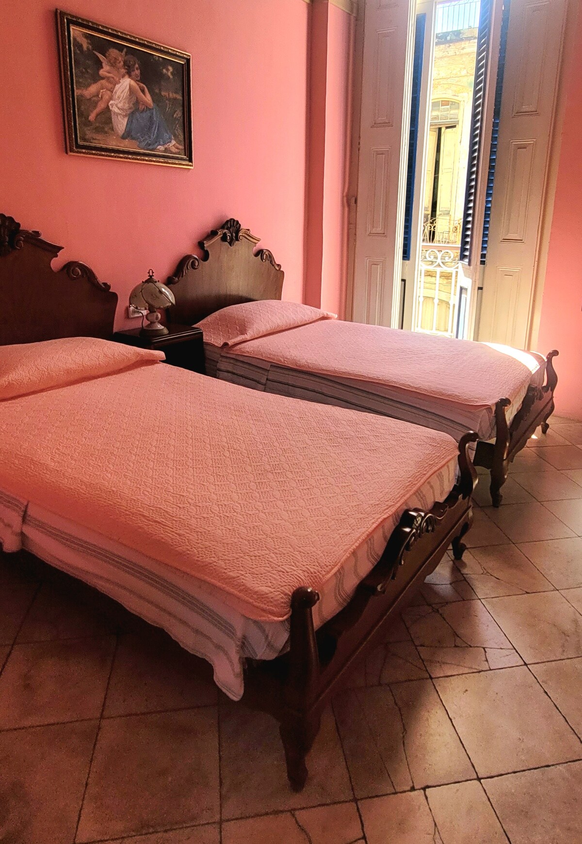 « Balcones de Cuba » est niché dans le centre historique de la Habana Vieja, à 20 mètres du célèbre bar-restaurant « La Bodeguita del Medio ». C'est une maison coloniale, construite en 1925, propriété horizontale, avec des plafonds de 5 mètres de haut et des mosaïques colorées de l'époque, très lumineuse et ventilée, car elle se trouve au troisième et dernier étage d'un magnifique bâtiment. Ses propriétaires actuels sont les deuxièmes propriétaires, qui l'ont restructurée en conservant tous les détails de l'époque.