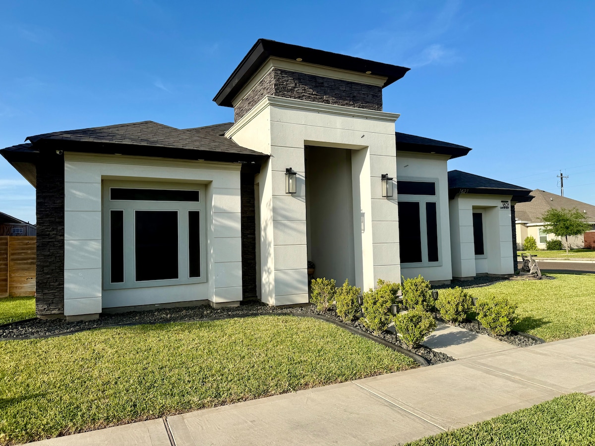 ✨Votre séjour idéal à Pharr, au Texas. Parfait pour les séjours prolongés, les professionnels contractuels et les voyageurs acceptant les animaux de compagnie ✅ Deux chambres spacieuses ♚ avec lit king et une chambre avec lit queen. ✅ Maison de plain-pied Wifi ✅ rapide et fiable (300 Mbit/s) ✅ Garage fermé. Borne de recharge pour VE Arrière-cour ✅ entièrement clôturée ✅ Lave-linge, sèche-linge et évier Bureau de travail ✅ dédié ✅ Espaces de vie ouverts et confortables ✅ Quartier calme et paisible ✅ Barbecue extérieur + sièges ✅ 4 téléviseurs ✅ À quelques minutes seulement du pont international de Pharr.