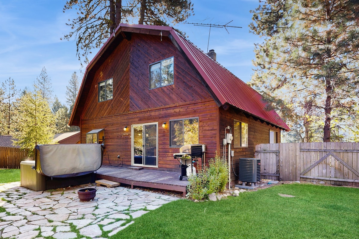 Un toit rouge, une cabane à deux chambres dans un quartier paisible de Donnelly à seulement 4 minutes en voiture de Cascade Lake. Plongez dans le spa sur le porche enveloppant, regardez les étoiles et profitez de vues filtrées sur West Mountain à travers les arbres. À l'intérieur, vous trouverez des lits confortables, une cuisine bien approvisionnée, des équipements modernes et une connexion Internet rapide par fibre optique. Idéal pour les couples, les familles et les petits groupes explorant Cascade Lake, McCall, Tamarack et Brundage.