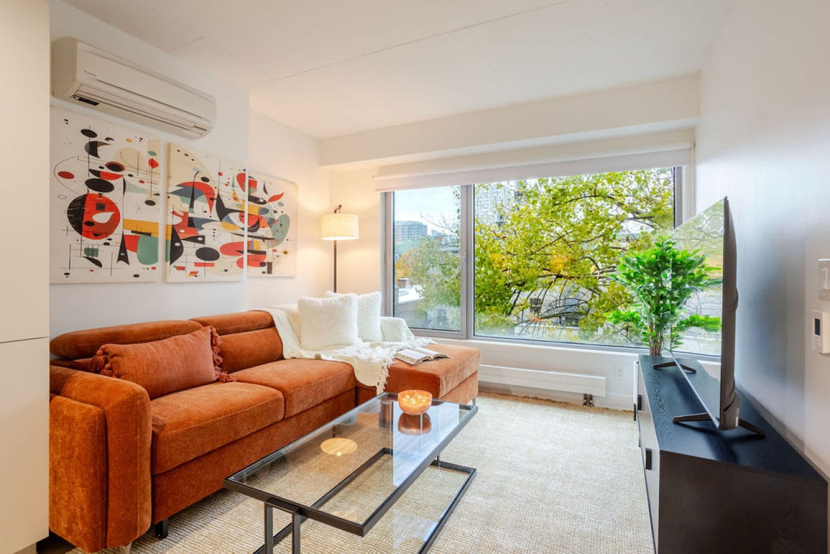 Bienvenue dans notre superbe suite moderne au cœur du centre-ville de Montréal, à quelques pas du Vieux-Port ! Cette suite élégante dispose d'un design ouvert sophistiqué, de finitions haut de gamme et d'une cuisine entièrement équipée parfaite pour les repas faits maison. Détendez-vous dans les chambres luxueuses avec une literie moelleuse et détendez-vous dans l'élégant espace de vie. Avec les meilleurs restaurants, boutiques et vie nocturne à deux pas, découvrez le mélange parfait de confort et d'excitation urbaine !