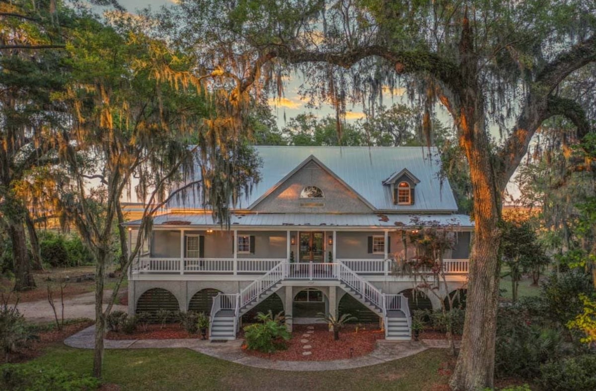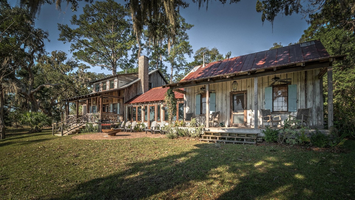 Bienvenue à The Dockside Dreamhouse ! Cette retraite cÎtiÚre, avec 3 chambres et 2,5 salles de bain, est située sur la riviÚre White Chimney avec un quai privé en eau profonde. Venez profiter de la belle cÎte du sud de la Géorgie ! Attrapez du crabe et du poisson juste à cÎté du quai, profitez d'un tournoi de cornhole dans l'arriÚre-cour, barbecue sur le patio tout en regardant le coucher du soleil, détendez-vous autour de la cheminée et admirez les étoiles ! Profitez de la piscine cow-boy de 8 pieds de mars à octobre. Venez vous détendre sur la cÎte. Animaux de compagnie clÎturés dans la cour