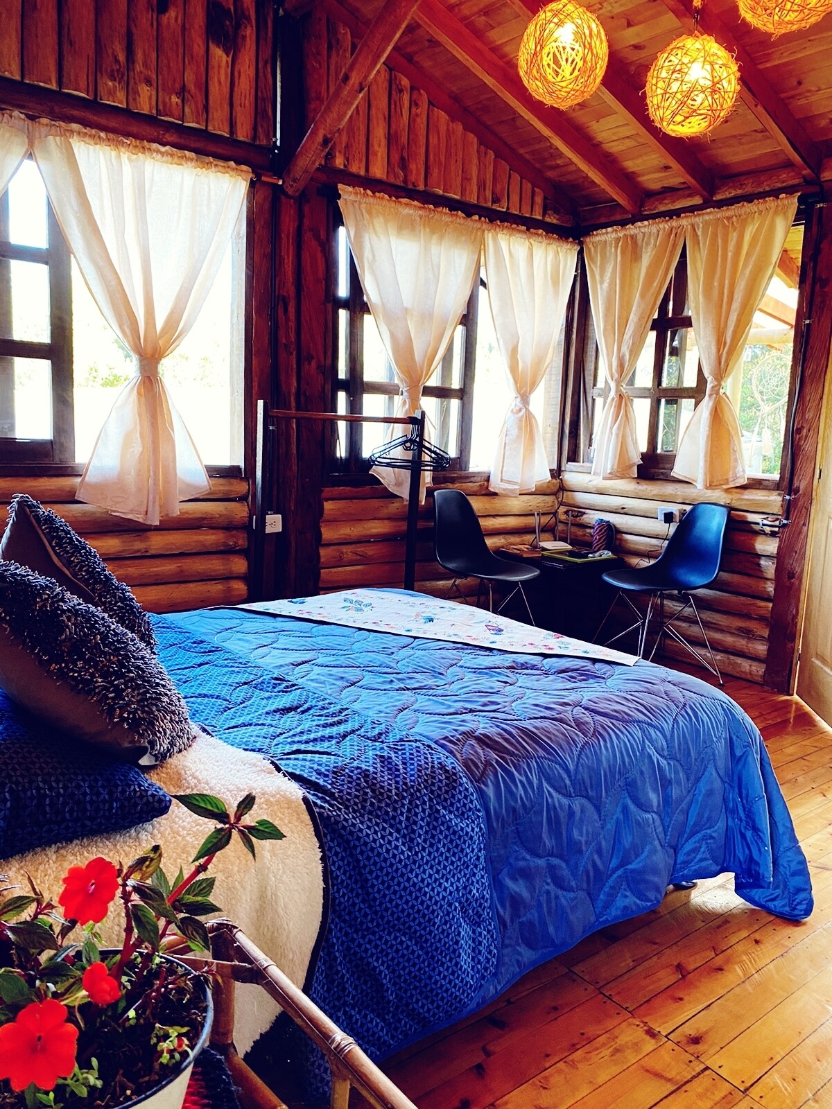 Just 40 minutes from Medellín, our chalets combine the rustic charm of Santa Elena with all the modern comforts you need. Each chalet is fully furnished and equipped, featuring high-speed internet, hot water, and private parking. You’ll have easy access to public transportation, local shops and markets, as well as cafés and restaurants within walking distance. Perfect for romantic getaways, remote work, or simply reconnecting with yourself in a natural and cozy setting