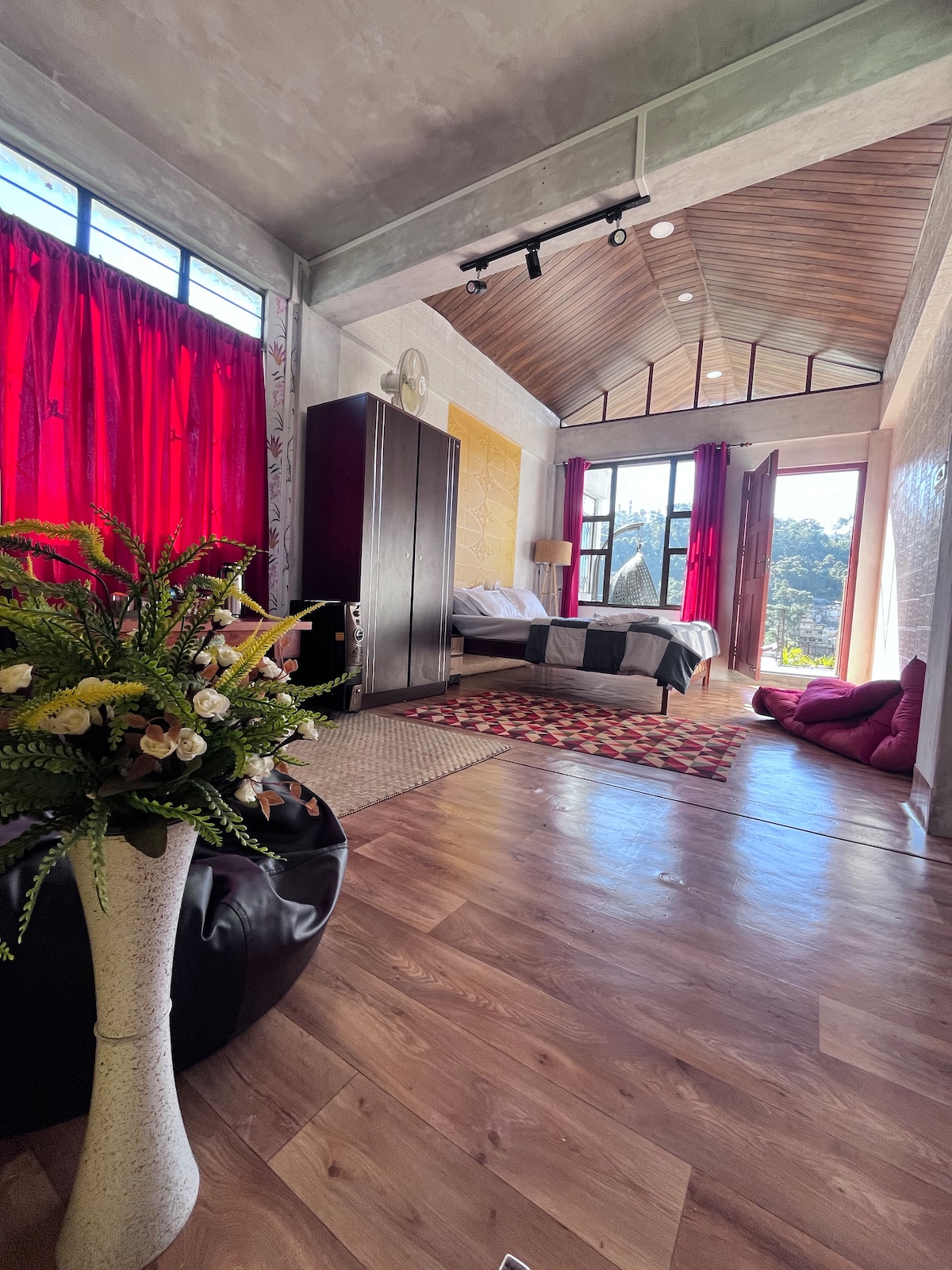 Perched on the 4th floor of a charming house, this private rooftop studio offers a peaceful retreat with stunning panoramic views of Shillong’s rolling hills. Perfect for solo travelers, couples, or small families, the space ensures complete privacy and a cozy atmosphere to unwind. A bright, airy studio with king size bed, well- equipped kitchenette and a modern bathroom with 24/7 hot water. A private balcony to enjoy your morning coffee or evening tea while soaking in the misty landscape.