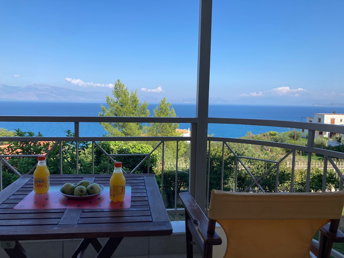 Bienvenue à Seaside Serenity Retreat, Sunset & Sea Balcony. Évadez-vous dans notre appartement en bord de mer tranquille, où une vue imprenable sur le golfe de Corinthe et de magnifiques couchers de soleil ne sont qu'à deux pas. Situé directement sur le rivage, le mélange parfait de confort et de nature. Détendez-vous sur le balcon en regardant le soleil se coucher sous l'horizon, ou une soirée paisible à observer les étoiles avec notre télescope. Dispose d'un salon moderne, de 2 chambres confortables et d'une cuisine entièrement équipée, tous conçus pour que vous vous sentiez chez vous.