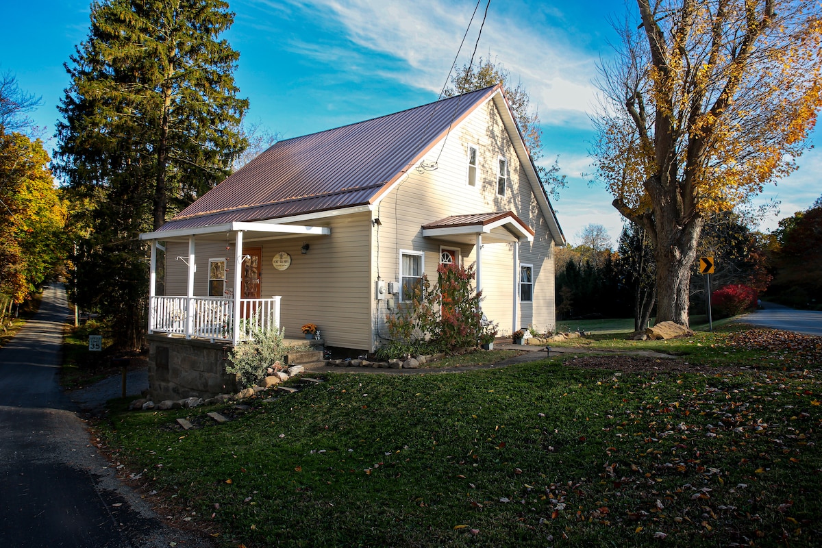 Cadre champêtre entouré de fermes en activité. Nous proposons une maison de deux chambres avec un très grand porche grillagé. Profitez du café du matin sur le porche en regardant les vaches entrer. Cadre très paisible et calme avec une grande cour. Obtenez une sensation rétro dans la salle de bain rose. Plancher stratifié récemment amélioré dans toute la maison. Mangez sur des assiettes en porcelaine dans la salle à manger traditionnelle ou utilisez des assiettes en papier avec accès à un gril. À moins de 15 minutes des magasins d'usine de Grove City et à 6 miles des terrains de chasse de l'État.