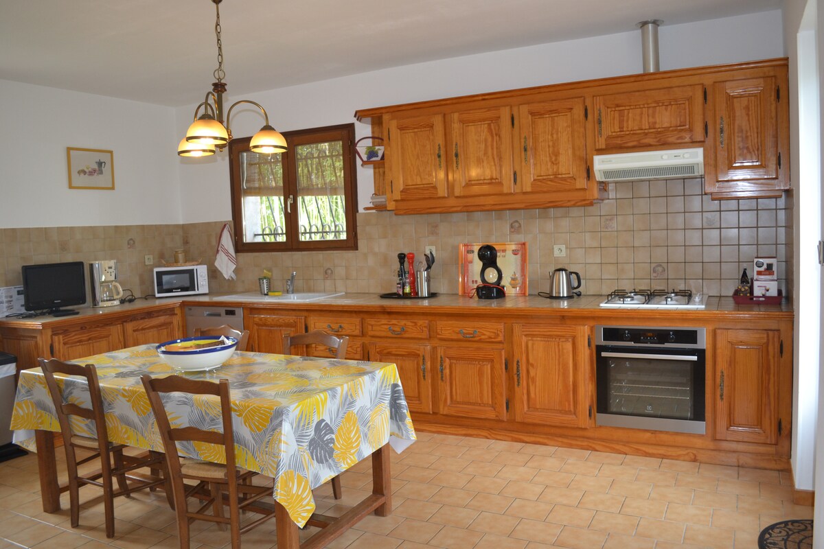 La Villa est un manoir en pierre entièrement rénové de 275 m2. Le rez-de-chaussée est composé de la cuisine, la salle à manger, du salon, de Wc ainsi que d’un cellier où est à votre disposition un lave-linge. 1er étage : Deux chambres équipées d’un lit 160x200 et de rangements (armoire, penderie ou commode) et d’un bureau avec un grand lit et une TV. 2ème étage : Une chambre équipée d’un lit 160x200 et une salle de bain avec baignoire et douche et un salon TV avec un grand lit et un bureau.