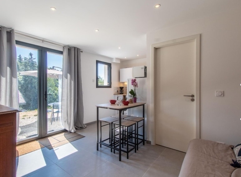 Charmant studio neuf à Poisy, cosy et chaleureux. Entièrement rénové en 2025, il offre un bel espace de vie d’environ 30 m² regroupant chambre, salon et cuisine moderne, ainsi qu’une salle de bain élégante. Frais l’été et agréable l’hiver, il allie confort et calme. Situé en rez-de-jardin d’une maison, proche du bus 1 (10 min d’Annecy), avec stationnement facile à proximité. Entièrement équipé. Entrée complètement indépendante. N’hésitez pas si vous avez la moindre question !