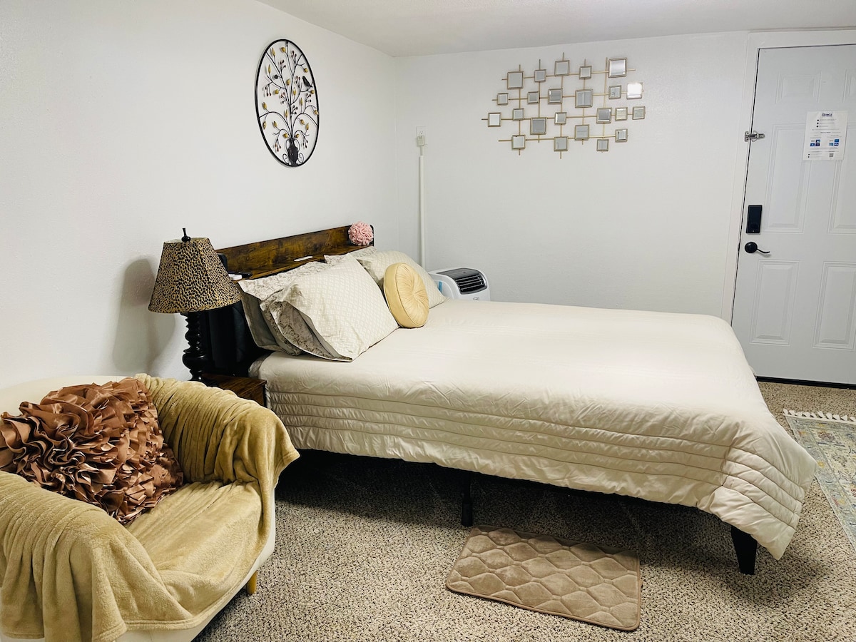 Studio meublé, à 10-15 minutes du centre-ville de Dallas, du siège social d'AT&T et de plusieurs hôpitaux du centre-ville, est parfait pour les professionnels du voyage ! Cet appartement est situé à l'arrière avec sa propre porte d'entrée. Il est équipé d'un lit queen size, d'une connexion Internet rapide, d'une télévision connectée 65", d'une climatisation/chauffage, d'une cuisine de luxe avec placards gris/comptoir en quartz, d'une salle de bain luxueuse avec douche à effet pluie, d'un nouveau W/D dans la maison ! Stationnement assigné devant l'unité. Séjours à la semaine/au mois de préférence. Il est interdit de fumer à l'intérieur du studio.