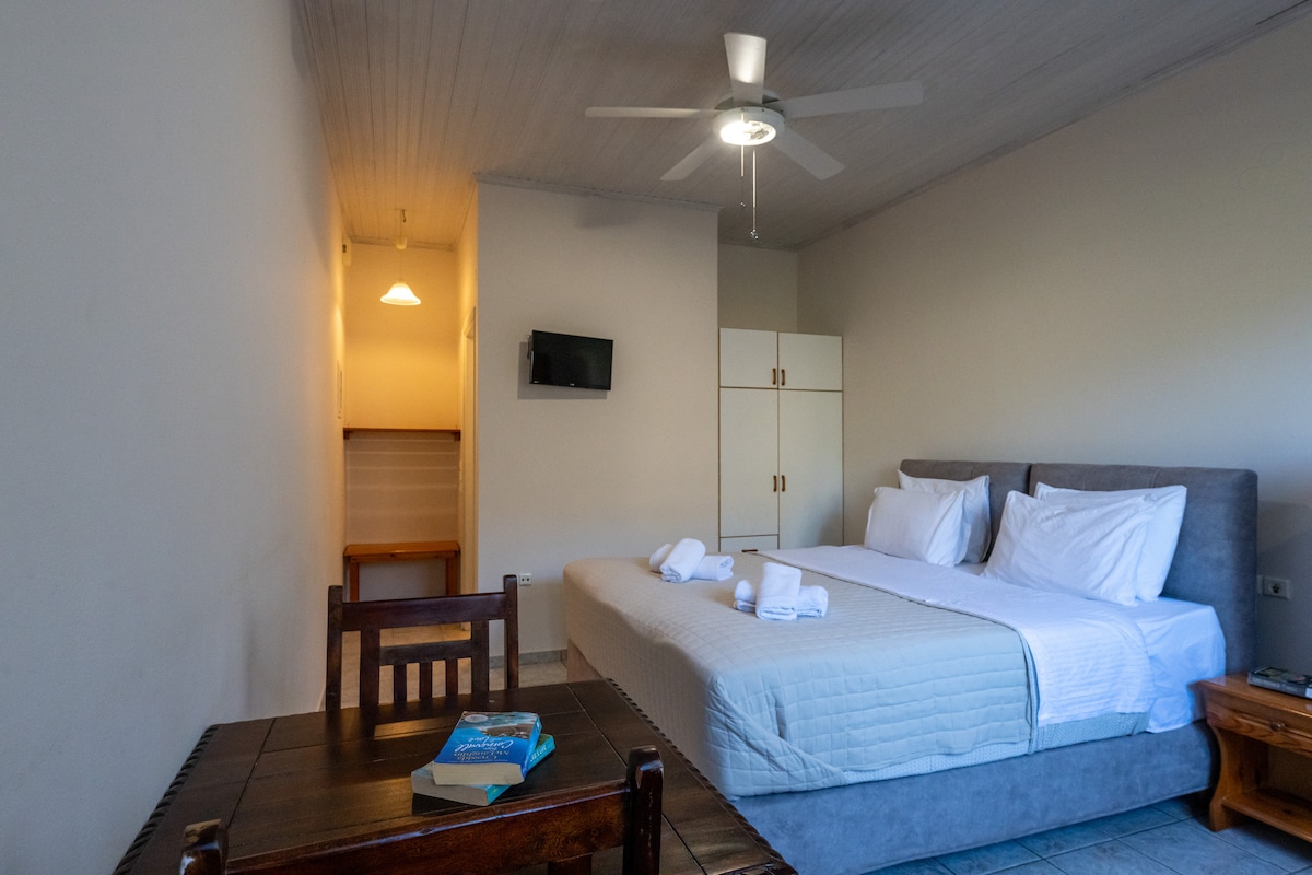 Notre appartement Hermes est au rez-de-chaussée ; studio d'une chambre (1 grand lit ou 2 lits simples), veuillez préciser votre préférence lors de la réservation. Télévision, cuisine, salon, salle de bain complète, climatisation, wifi et parking privé. Notre femme de ménage à temps plein sera là pour entretenir votre appartement selon vos besoins afin que vous puissiez profiter d'un séjour confortable !