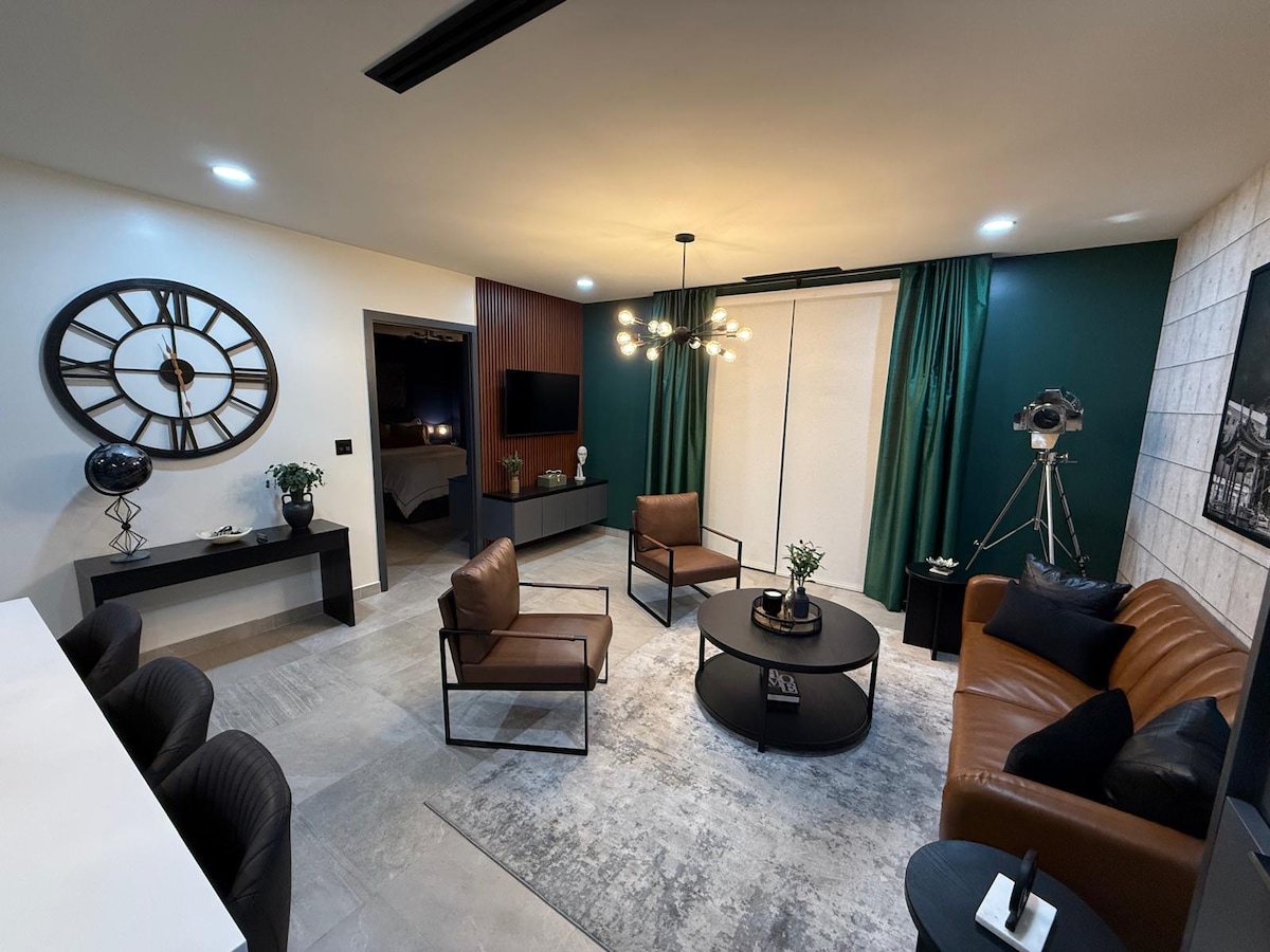 Appartement moderne et confortable d'une chambre + espace flexible à Punto Sur. PET FRENDLY Situé dans un quartier résidentiel calme et sûr, avec un accès immédiat par l'axe central à la gare centrale, au centre civique et aux zones commerciales. Idéal pour les cadres, les voyageurs et les séjours de repos. Le logement : 1 chambre avec lit Queen size Salon avec canapé-lit Closet Climatisation dans chaque espace Cuisine entièrement équipée Espace de service avec lave-linge et sèche-linge