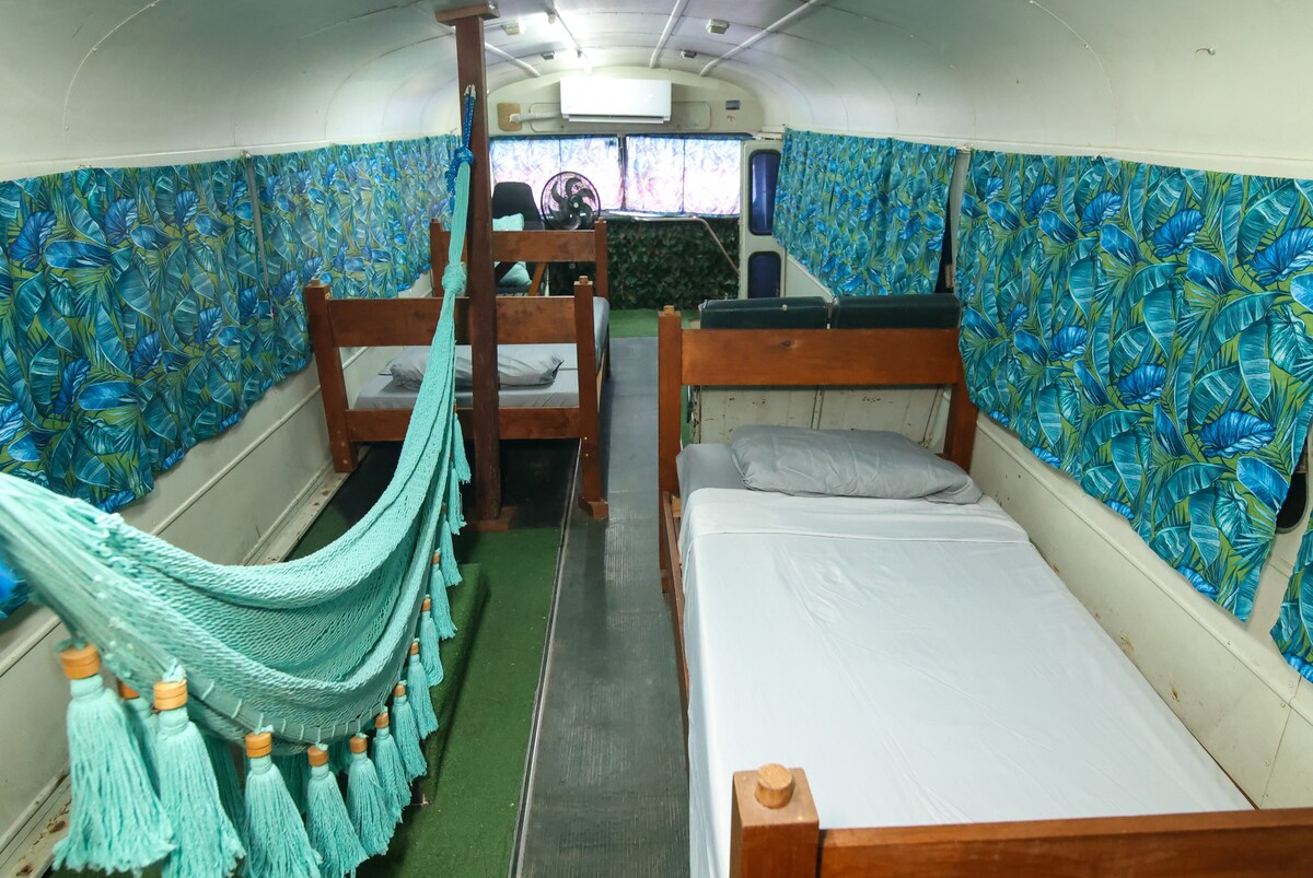 J'ai déjà le bus scolaire disponible pour faire du Gampling. La propriété dispose de salles de bains et de douches pour un usage commun, l'accès à la plage est juste en face de la propriété, vous arriverez en deux minutes à pied de la plage. Il a de l'électricité, le bus aura son propre réfrigérateur , climatisation, ventilateur et autres accessoires.