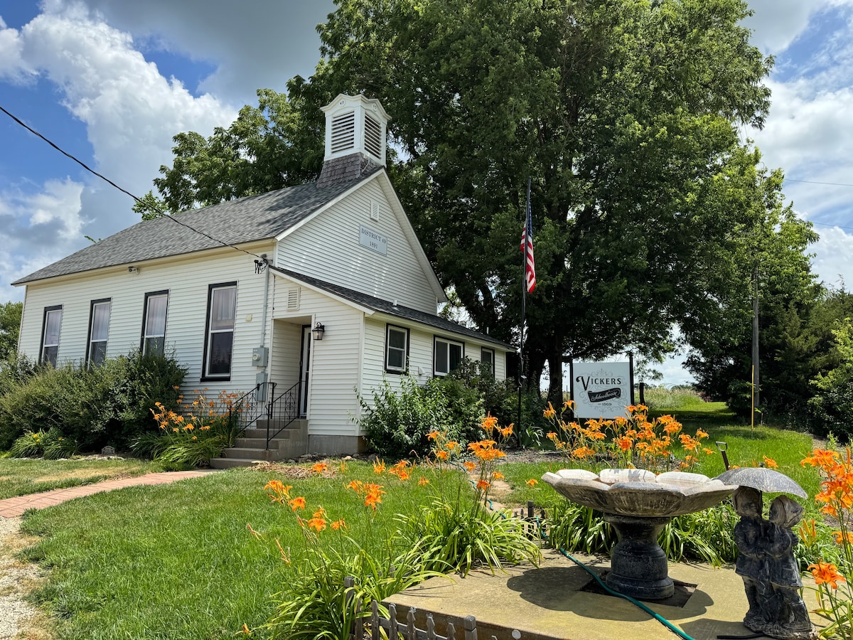 Charme ✨historique et confort moderne dans la prairie du Kansas✨ Vickers Schoolhouse à la ferme de fleurs Crimson Ridge ★★★★★ « C'est vraiment un trésor! Tellement confortable et pittoresque! » Vous cherchez une escapade paisible à la campagne qui semble loin de tout, mais qui reste proche de tout? Que vous planifiez une escapade romantique ou une fin de semaine entre filles pleine de rire et de détente, cette école de plus de 130 ans magnifiquement restaurée offre le mélange parfait de nostalgie, de charme et de confort.