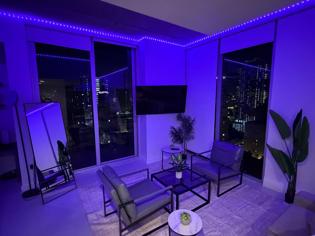 Réveillez-vous dans une jungle urbaine luxuriante avec une vue imprenable sur le centre-ville de Miami. Conçu avec soin par Alannah K Interiors & Luiz Cent, Miami Jungle allie style, confort et emplacement pour un séjour qui se sent mieux qu'un hôtel de charme Entrez dans l'univers zen avec une fontaine de Bouddha, une œuvre d'art inspirante « Do What You Love » et un hamac de yoga aérien. Profitez de la vue sur la baie et la ligne d'horizon depuis les fenêtres du sol au plafond, détendez-vous sur votre balcon privé et respirez facilement entouré de plus de 50 plantes purificatrices d'air et d'une touche de design moderne.