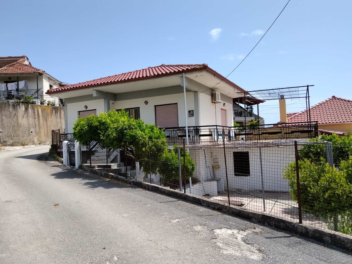 Une villa jardin entièrement équipée, pouvant accueillir 10 personnes dans trois chambres spacieuses. La propriété est idéalement située juste en face de la plage, offrant une vue imprenable sur la mer Ionienne. À moins de 10 min en voiture de la ville de Preveza, à 35 min en voiture de l'île de Lefkada et à proximité de nombreux sites et plages cristallines. La maison est entièrement climatisée, dispose d'une télévision connectée, d'une connexion Wi-Fi gratuite, d'une salle de bain spacius et d'un petit WC, d'un lave-linge, d'un lave-vaisselle, d'un barbecue et est adapté aux enfants et aux animaux de compagnie !