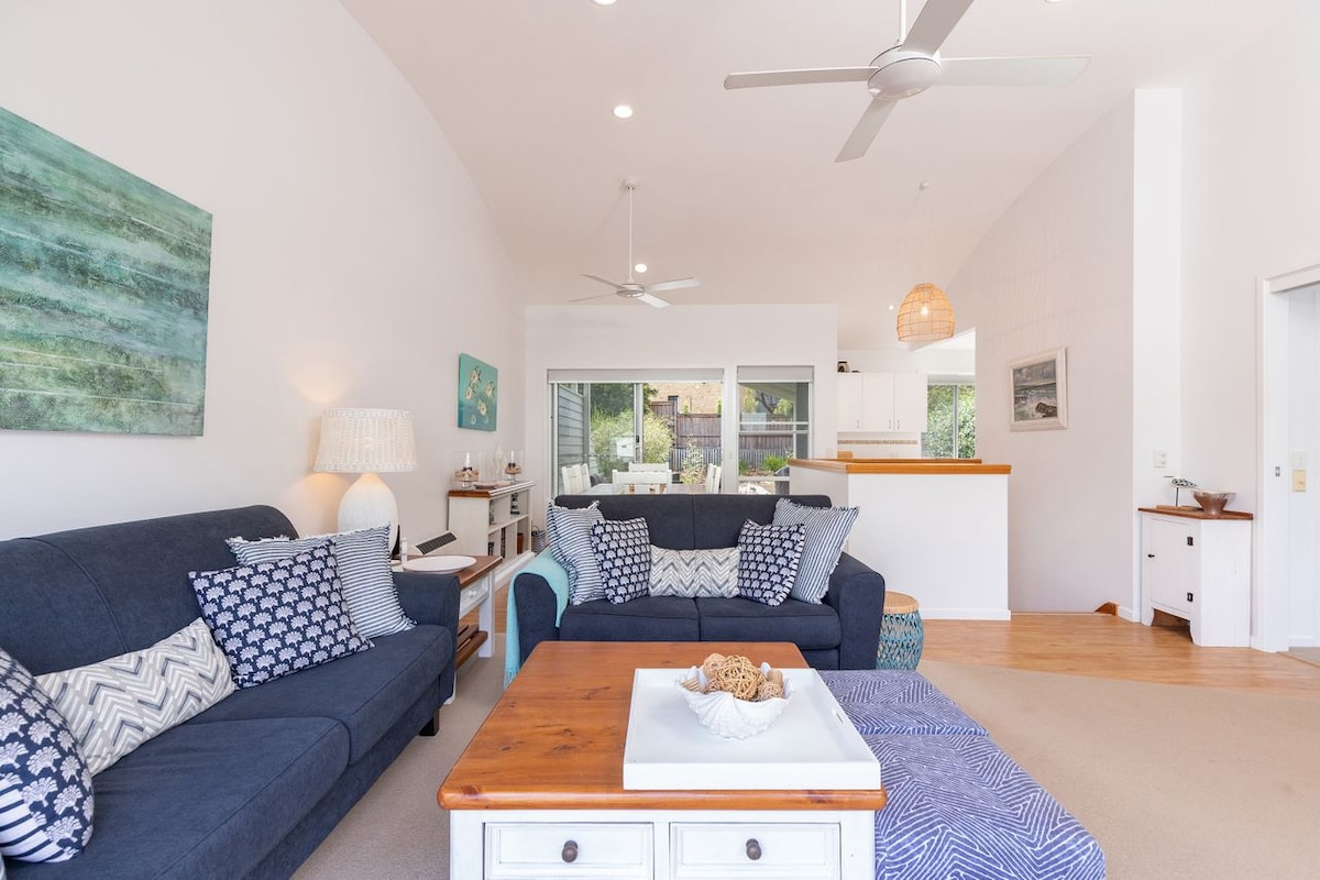 Avec un emplacement privilégié et un aménagement contemporain, The Beach Townhouse est le cadre idéal pour une escapade romantique, en famille et entre amis au bord de la plage. Ouvrez la porte de votre appartement élégant et vous vous sentirez instantanément comme chez vous. Détendez-vous dans la décoration élégante, les équipements de qualité et la richesse des inclusions. Détendez-vous dans une maison de ville conçue par un architecte à proximité de la plage, accès facile à la rivière et à la rampe d'embarquement, boutiques et restaurants. Foxtel et Wi-Fi GRATUITS. Linge de maison et serviettes sont fournis pour le séjour. Animaux de compagnie bienvenus !