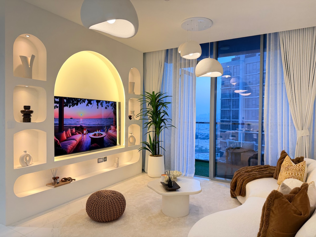 Situé au 22e étage, Mediterranea est un appartement lumineux et paisible avec une vue incroyable sur la marina et la ville. Nous avons conçu l'espace avec soin, inspiré par la Méditerranée que nous aimons et que nous manquons. Chaque coin est fait pour se sentir chaleureux, simple et relaxant. Le salon et la chambre offrent une vue incroyable du sol au plafond, parfaits pour profiter de la lumière du coucher du soleil ou regarder les bateaux aller et venir. Accès direct à la Marina Walk et à moins de 10 minutes de la plage.