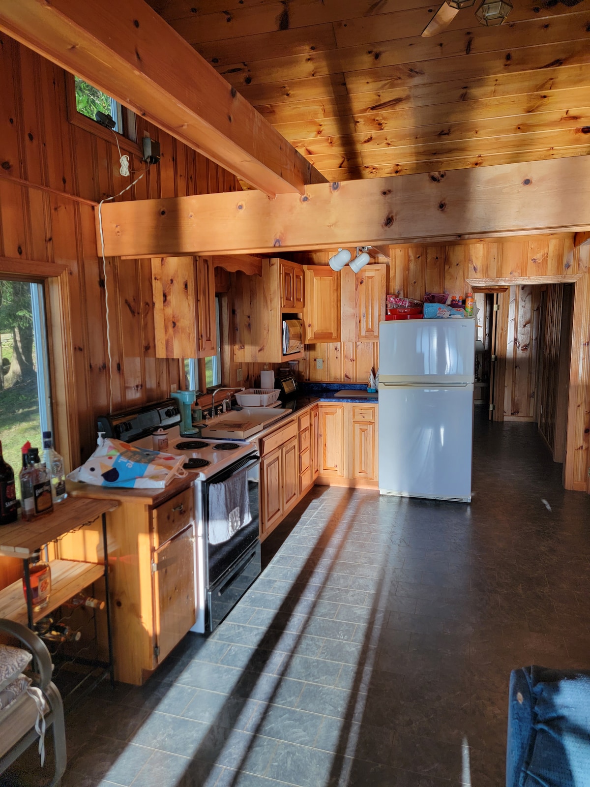 Chalet très confortable d'une chambre à 200 mètres du lac. Grande salle d'eau avec douche, sols chauffants et buanderie. Cuisine complète, séjour avec canapé et télévision et Wi-Fi. La chambre dispose d'un long lit double Tempur-Pedic. Porche fini avec table/chaises et un bureau/espace de travail. Micro-ondes, cafetière, grille-pain, four grille-pain, patio avec gril à gaz, pop-corn, cuiseur à riz et à légumes. Imprimante Wi-Fi. Lit pliant pour bébé sur demande. Lave-linge et sèche-linge, sèche-cheveux.