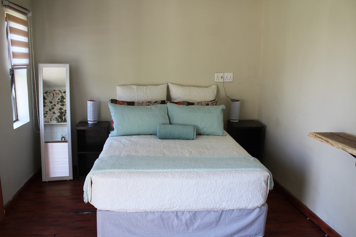 À énergie solaire, votre suite privée est l'une des 3, côte à côte dans la cour du jardin de notre maison patrimoniale du Cap de 1917. Attendez-vous à un parking sécurisé fermé, un matelas et une literie de qualité (toutes les suites), des rideaux occultants, une douche attenante, Netflix, une connexion Wi-Fi gratuite, une prise USB, une kitchenette avec un petit réfrigérateur, un four à micro-ondes, une bouilloire, un patio et un espace barbecue partagé. Vous êtes libre de profiter du jardin et des espaces extérieurs qui comprennent une cour barbecue.