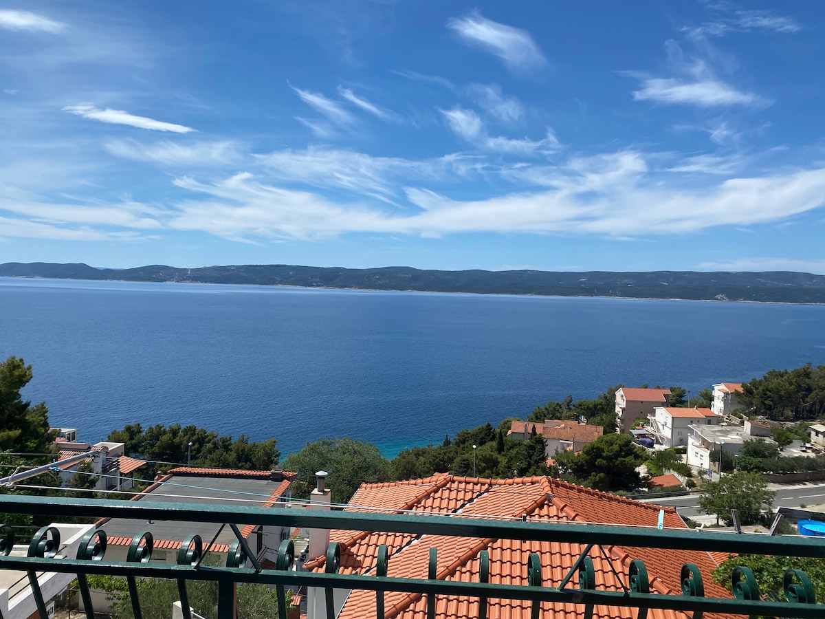 Un appartement ensoleillé sur la mer Adriatique, avec une grande terrasse ouvrant pour révéler une vue majestueuse sur la mer et les couchers de soleil, ainsi qu'une terrasse latérale ombragée pour des soirées relaxantes. La troisième personne (jeune ou enfant) est possible sur le lit simple dans la petite chambre séparée.