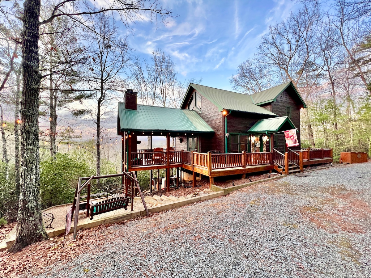 ❤Évadez-vous dans notre luxueux chalet nouvellement construit avec une vue imprenable! Parfait pour les familles ou les groupes, ce logement spacieux peut accueillir confortablement jusqu'à dix personnes. Détendez-vous dans le spa, profitez des trois foyers ou défiez vos amis à la piscine. Situé sur une superficie pittoresque, vous êtes à quelques minutes du centre-ville de McCaysville et de Blue Ridge. Il dispose d'une connexion Internet haut débit, d'une cuisine bien équipée et d'une oasis extérieure sereine. Votre escapade parfaite dans la nature vous attend!