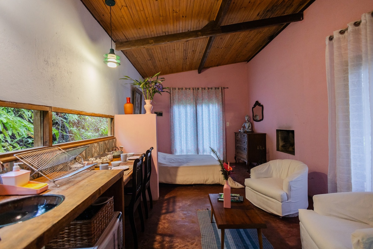 Casa Meme fait partie de ce qu'on appelle MACONDO – une villa… C'est un refuge douillet pour deux personnes, idéal pour ceux qui veulent se détendre et passer quelques jours au cœur de la nature de la forêt atlantique. Avec son aménagement ouvert et son atmosphère chaleureuse, la maison vous invite à vous détendre : allumez le foyer les nuits froides, relaxez dans le bain avec vue sur la forêt ou écoutez simplement les sons de la nature. C'est un espace conçu pour la contemplation, le repos et pour profiter du calme des montagnes.