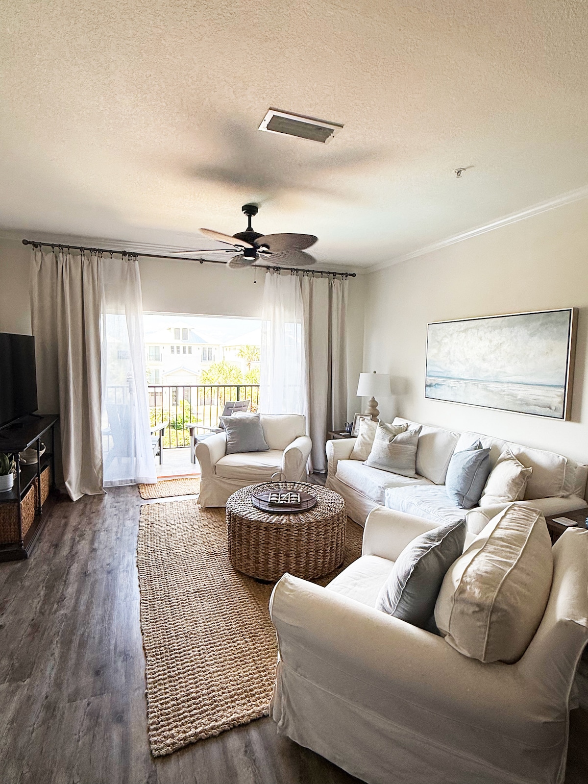 Notre endroit reposant a été joliment rénové avec un tout nouveau sol, des meubles, des téléviseurs intelligents, des appareils électroménagers et une peinture murale et des rideaux de couleur neutre. Il est situé au 6e étage du bâtiment principal du Grand Sandestin. Nous fournissons un trajet en TRAM jusqu'à la plage (5-10 min). Un placard de plage rempli de serviettes de plage et de glacières. Cuisine entièrement équipée et lave-linge/sèche-linge à l'intérieur du logement. Espace de rangement du propriétaire avec chaises longues, parasol et glacières.