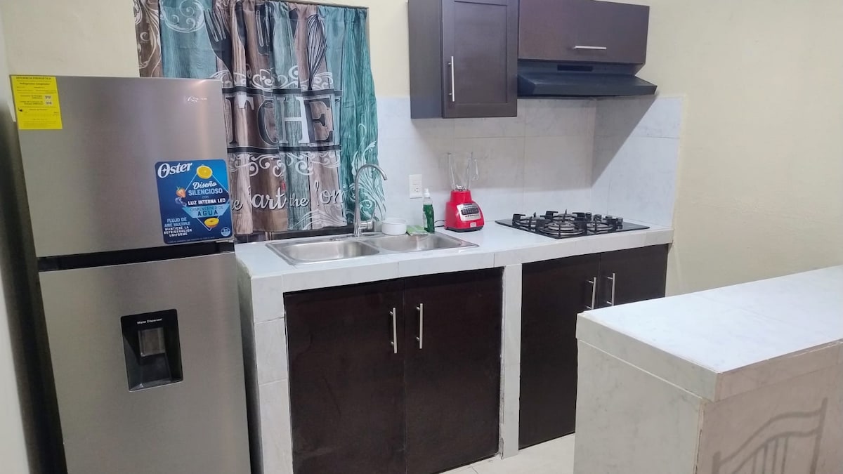 Suite à seulement 8 minutes de l'aéroport international de Monterrey, totalement indépendante, idéale pour ceux qui recherchent la proximité de l'aéroport, viennent travailler, en vacances ou simplement se détendre. ** Espace climatisé** Lit kangourou avec deux matelas doubles, cuisine équipée, 1 salle de bain complète, bar à petit-déjeuner avec bancs hauts, Internet, Smart TV, Amazon Video. Il est au rez-de-chaussée. Lotissement privé avec surveillance.