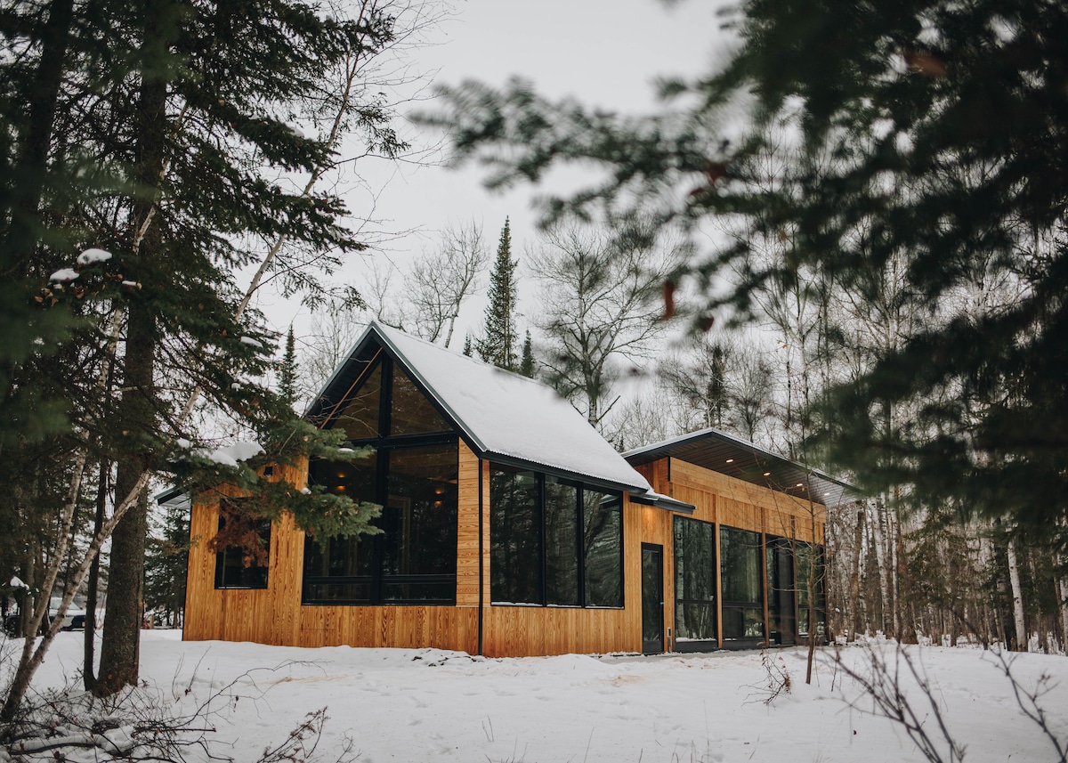Escapade isolée, tranquille, calme et extrêmement privée sur les rives d'une rivière protégée, à seulement 1,5 heure des villes jumelles ! Même le beau trajet pour s'y rendre est relaxant. Entrez dans un monde de paix et de calme au fond des bois. Préparez de délicieux repas dans une cuisine moderne haut de gamme bien approvisionnée, jouez dans la rivière, détendez-vous dans le sauna ou profitez d'un feu de joie. Il ne s'agit pas d'une cabane typique, mais d'une oasis écologique spirituelle avec un mélange éclectique unique d'esthétique moderne, rustique, amérindienne et japonaise.