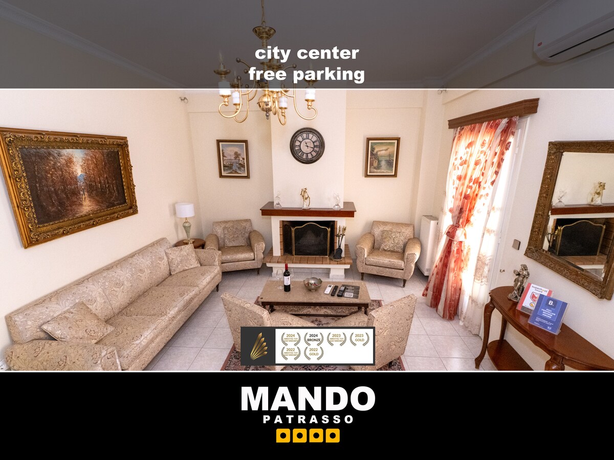 MANDO PATRASSO est un appartement de 75 m2 en plein cœur de Patras aménagé en ligne classique. Elle est située dans le centre de la ville et se trouve à seulement 500 mètres de la place principale et est entourée d'un côté par le château médiéval de Patras et la forêt de pins de Dasilli. Elle est située au premier étage d'une maison de deux étages au 45 rue Alexandrou Ypsilantou dans le quartier Vlatero de Patras.