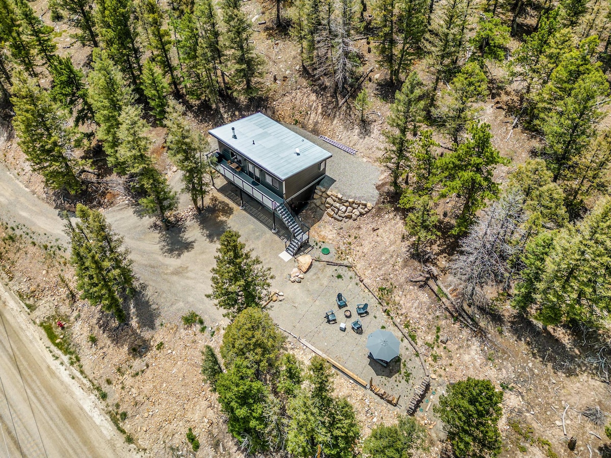 Rechargez au Hygge Chalet sur 3,5 acres boisés avec une vue imprenable sur les montagnes Rocheuses. Le chalet en A respectueux de l'environnement s'inspire du hygge, d'un sentiment de confort danois et de plaisirs simples. Un sauna finlandais extérieur, un foyer norvégien, des hamacs, un chargeur de véhicule électrique, une grande terrasse enveloppante, un bar à boissons chaudes et des lits de luxe créent une ambiance chaleureuse parfaite. Explorez un sentier de randonnée privé qui va de notre propriété à des kilomètres dans la forêt nationale. Détendez-vous, recentrez-vous et reconnectez-vous dans cette expérience unique.