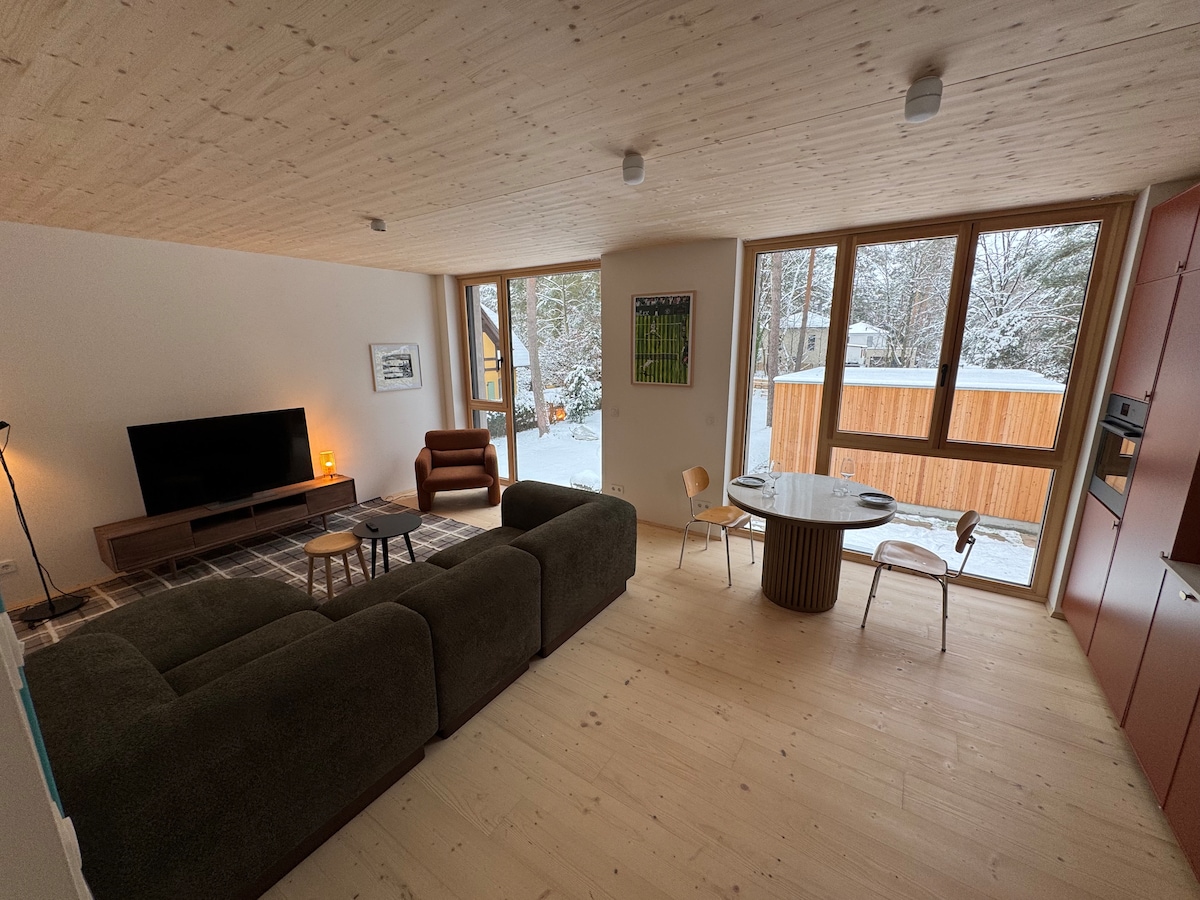 Profitez d'une retraite paisible à seulement 2 minutes du lac Wandlitz dans un studio confortable. L'appartement fait partie de notre propre maison, mais vous aurez votre propre entrée séparée. Parfait pour les voyageurs en solo, les couples ou les petites familles, il est entièrement meublé et situé au centre, à seulement 30 minutes de Berlin. Avec l'arrivée autonome, vous aurez des heures d'arrivée flexibles. Les magasins, les restaurants et les sentiers naturels sont tous à distance de marche. L'hôte sympathique vit à côté pour vous aider à répondre à vos besoins pendant votre séjour !