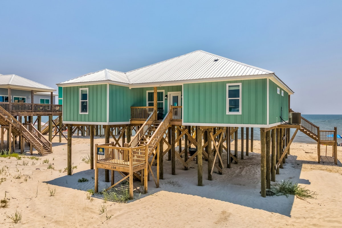 ✔ 4 chambres, 2 salles de bain – Peut accueillir jusqu'à 10 personnes ✔ Vue dégagée sur l'océan depuis la terrasse panoramique ✔ Full Putt Putt Course & Corn Hole Under the House ✔ À seulement 50 étapes de la plage : ne laissez jamais de sable ✔ Logement et plage adaptés aux chiens – Amenez votre toutou! (avec frais) Terrasse ✔ spacieuse avec Adirondack et chaises longues + douche extérieure Wagon de ✔ plage, chaises, jouets et planches de surf fournis À ✔ 5 minutes des restaurants locaux, à 20 minutes du centre-ville de Gulf Shores Chaise ✔ haute, pack ’n Play, draps, serviettes et savons inclus