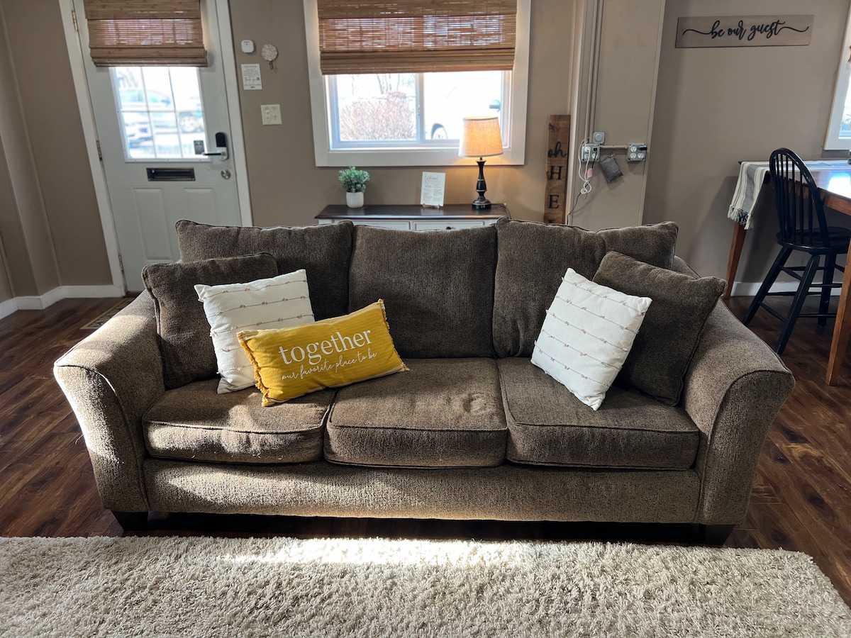 Le Haven est exactement cela : un lieu de repos. Simplifiez-vous la vie dans ce logement paisible et central. La cabane est nichée dans une zone boisée avec vue sur un étang et des collines. Au cœur de la belle région Amish, nous sommes à quelques minutes des attractions populaires. Le séjour comprend une cuisine complète, un lave-linge et un sèche-linge, ainsi que des meubles confortables pour profiter d'une télévision intelligente et d'un foyer. Un lit King Size et une salle de bain complète au rez-de-chaussée. Le loft dispose d'un lit Queen Size. Nous vous invitons à séjourner chez nous !