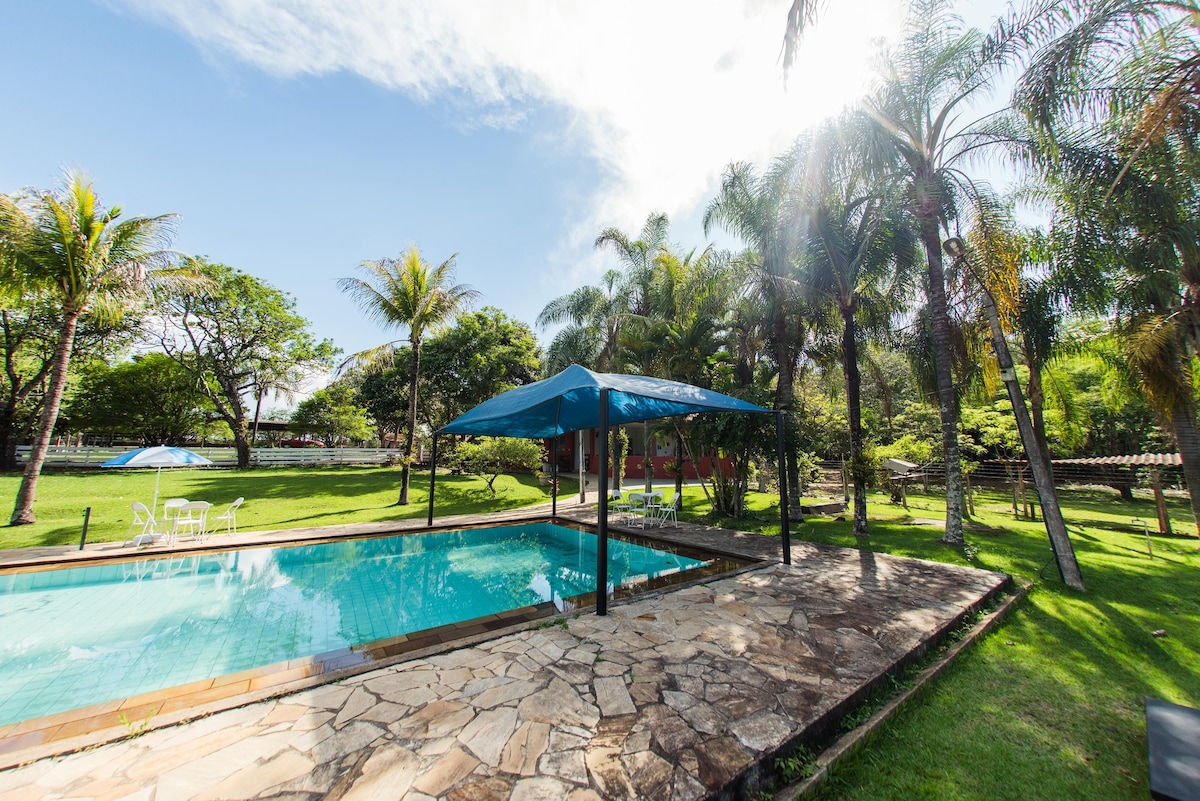 Il y aura 5 000 mètres carrés d'un véritable paradis privé au milieu de la nature, pour que vous profitiez de moments en famille, à deux ou pour le travail (nous ne louons pas pour les fêtes), nous sommes situés dans un quartier de Chacaras (jatobazeiro) dans la municipalité de Mogi Guaçu-SP, surveillance 24h/24, sécurité et accès facile, sur le site nous avons 3 locataires (loueur) le chien (Lion et Neguinha) 2 chats, chacun ayant son propre espace extérieur de la maison, et tout le charme que la nature de Sitio offre !
