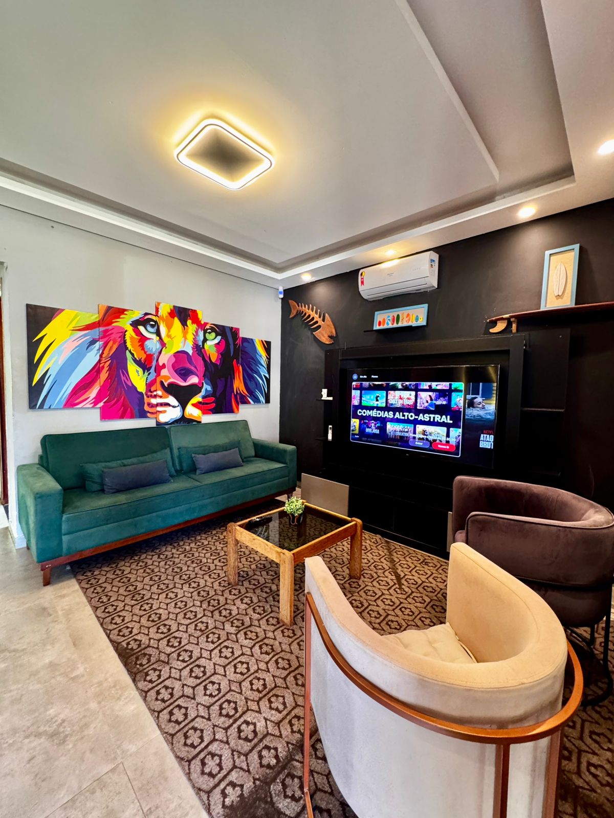 Appartement privé à usage privé, cuisine avec plaque de cuisson, four électrique, micro-ondes, réfrigérateur, canapé-lit, chambre avec lit double, armoire, télévision intelligente, réseau wifi, copropriété avec grand parking, piscine, barbecue, terrains de sport, location à la journée ou plus longtemps, utilisation exclusive du locataire. Proche de « Zerão » à Mogi Mirim, accès rapide aux routes, grand espace pour le sport, proche de la banque, supermarché, bars et restaurants. Porte et sécurité 24h/24.