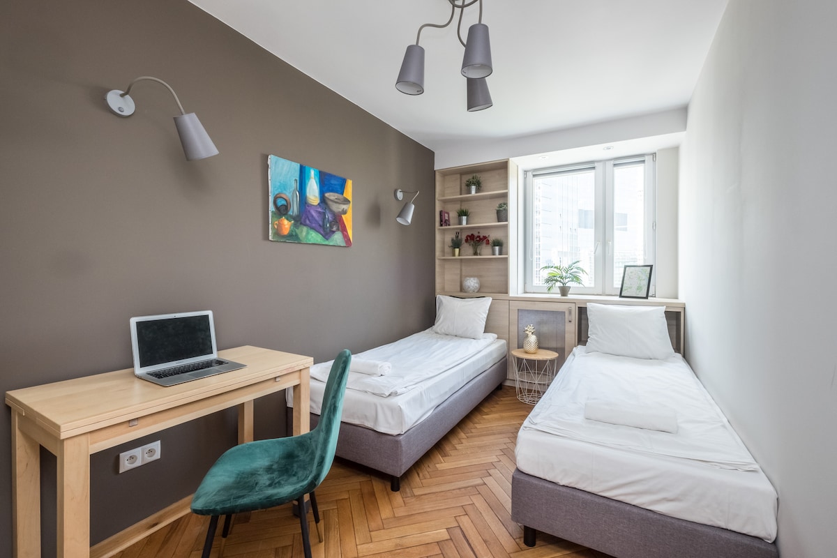 Un appartement confortable d'une chambre situé dans le centre de Mokotów - il est neuf, entièrement meublé, équipé de tout ce dont vous pourriez avoir besoin pendant votre séjour. Garage souterrain, télévision connectée et Internet haut débit, cuisine entièrement équipée et fonctionnelle et produits d'hygiène de base disponibles pour votre confort. Station de recharge pour véhicules électriques. Salle de sport, sauna, vélos, location de voitures électriques, terrasse sur le toit de l'immeuble à votre disposition.
