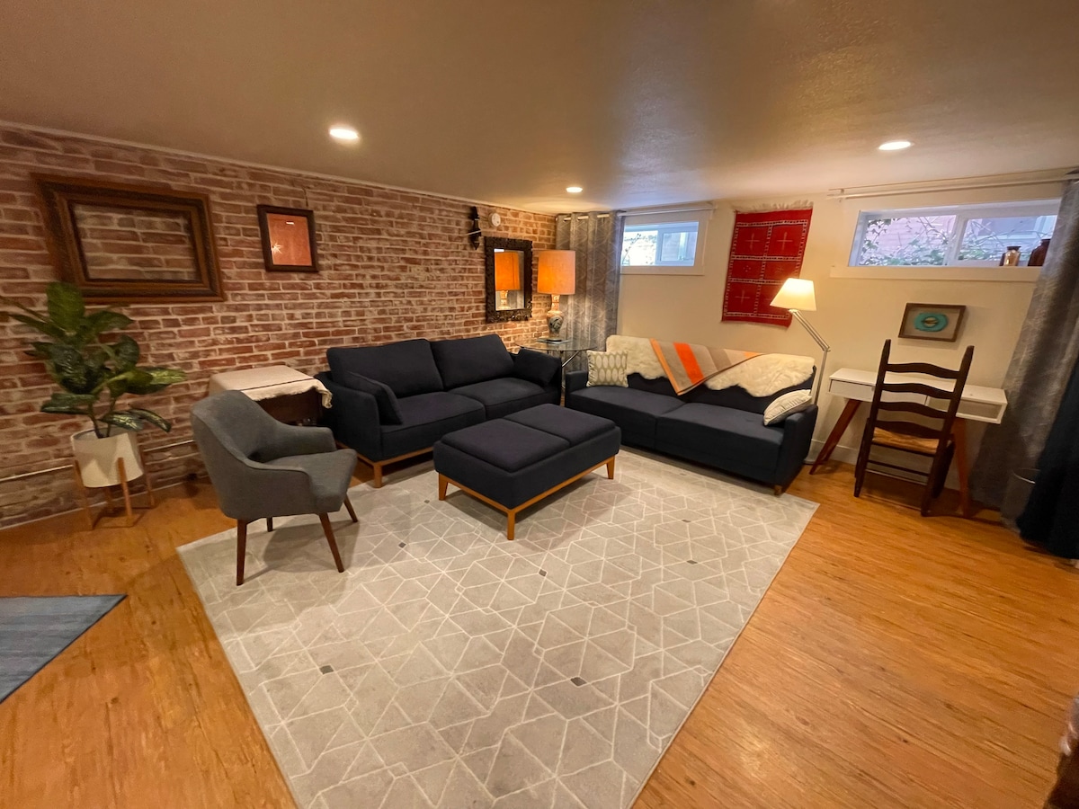 Cet appartement unique offre un mélange parfait de caractère historique et de design moderne. Avec des plafonds de 13 pieds, des briques et des conduits apparentes, des tonnes de plantes, des boules disco, des meubles modernes, de la lumière naturelle et du sol en béton, vous pourrez vivre en ville au cœur du Capitole historique de Denver. C'est notre maison à temps plein, et bien que nous ne soyons pas là pendant votre séjour, sachez que c'est un espace habité — pas un hôtel. Vous y trouverez des touches personnelles et des signes de la vie réelle.