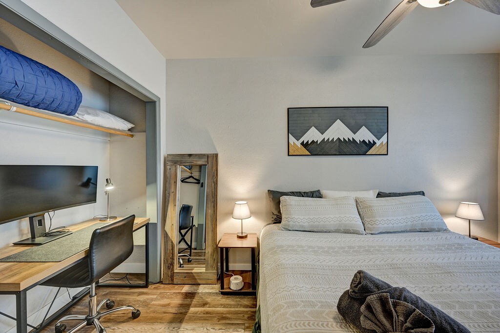 Bienvenue dans notre loft historique du centre-ville récemment rénové ! Ce studio confortable est parfaitement situé au cœur de la ville, à moins d'un pâté de maisons de la rivière Arkansas, du complexe de sentiers de montagne « S », de tous les magasins pittoresques et de tous les bars et restaurants du centre-ville ! L'appartement dispose d'une cuisine équipée, d'un lit King Size, d'un canapé-lit gigogne, d'une douche à l'italienne et toutes les œuvres d'art sont réalisées par des artistes locaux ! Vivez le style de vie de la ville de montagne en tombant dans ce loft du centre-ville ! Profitez !