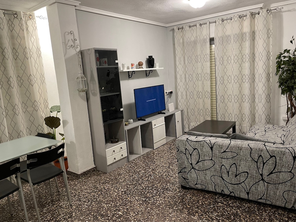 Appartement moderne, central et très confortable d'une chambre au rez-de-chaussée entièrement équipé avec tout ce dont vous avez besoin pour passer le temps que vous voulez à Elda (à 30 km d'Alicante). Détendez-vous et déconnectez-vous dans ce logement calme et élégant. Convient pour une ou deux personnes. Entrée sans marches.