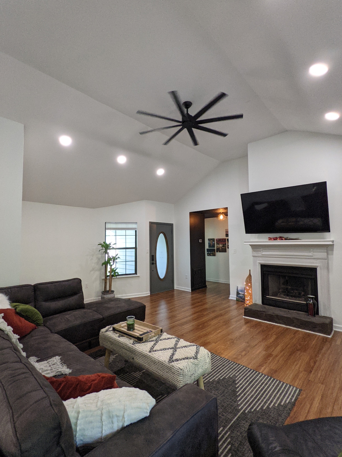 Sentez la solitude d'une cour arrière paisible de 2 acres, tout en étant idéalement situé à seulement quelques minutes des restaurants, des boutiques et des divertissements. La maison dispose d'une grande chambre ouverte et d'un coin repas. La cuisine est ouverte sur la salle familiale et descend dans un salon confortable avec une cheminée à gaz. Il comprend toutes les télévisions intelligentes, un lit king size, un lit queen size et un grand lit. Jouets et pack n play disponibles pour les plus petits.