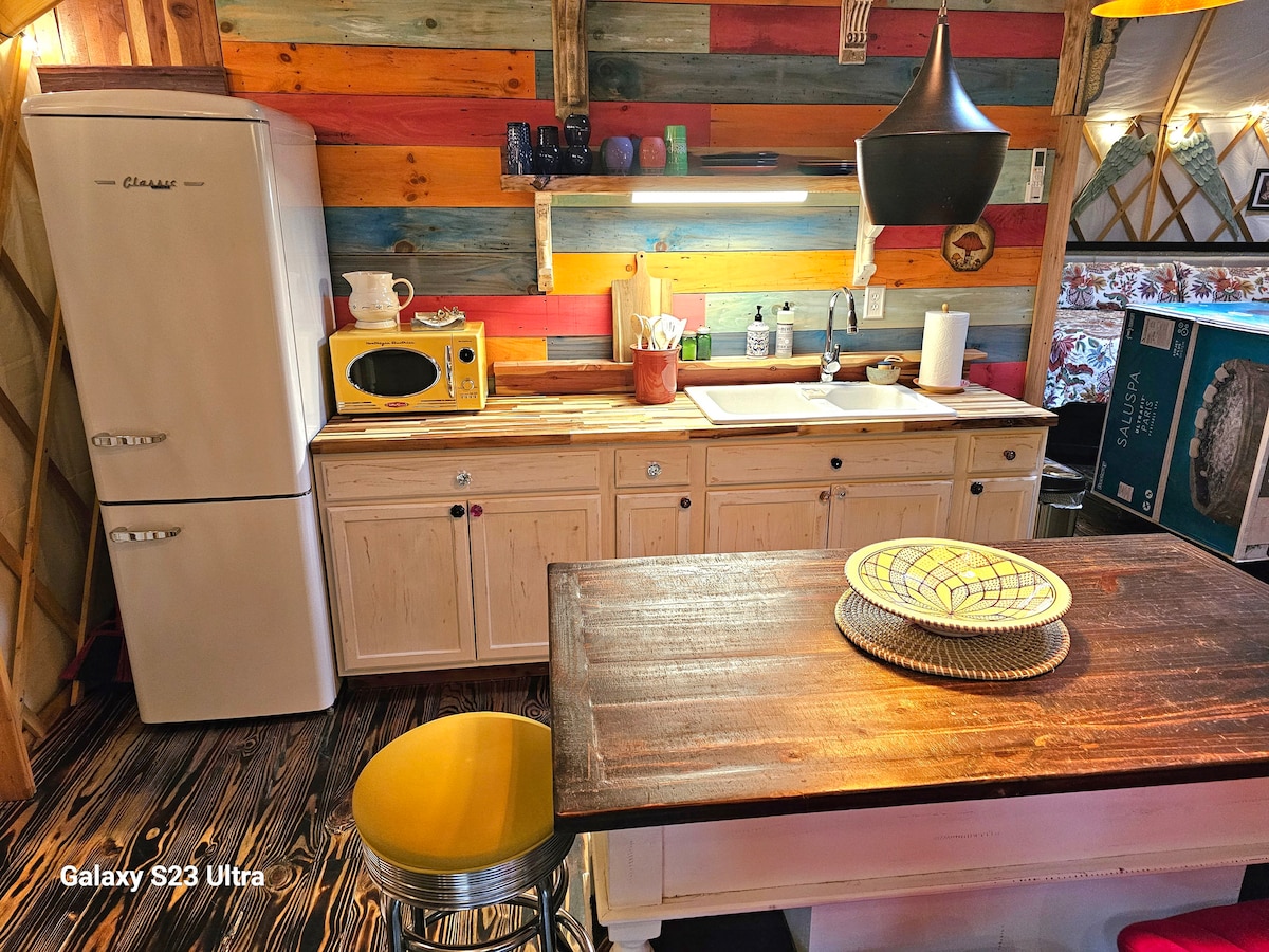 Cette nouvelle yourte de 30 pieds est parfaitement située, directement sur Potts Creek. Les montagnes ont toujours attiré l'esprit libre d'une âme gitane. Si c'est vous, venez vous échapper dans la solitude de la yourte Feathered Fern! Un thème Boho amusant et coloré, vous serez entouré de textures douces et de luxes que l'on ne trouve pas dans un tel cadre. Plongez dans la chaleur d'une grande baignoire à remous en regardant par la fenêtre le ruisseau qui murmure. Vous trouverez ici la paix et la solitude.