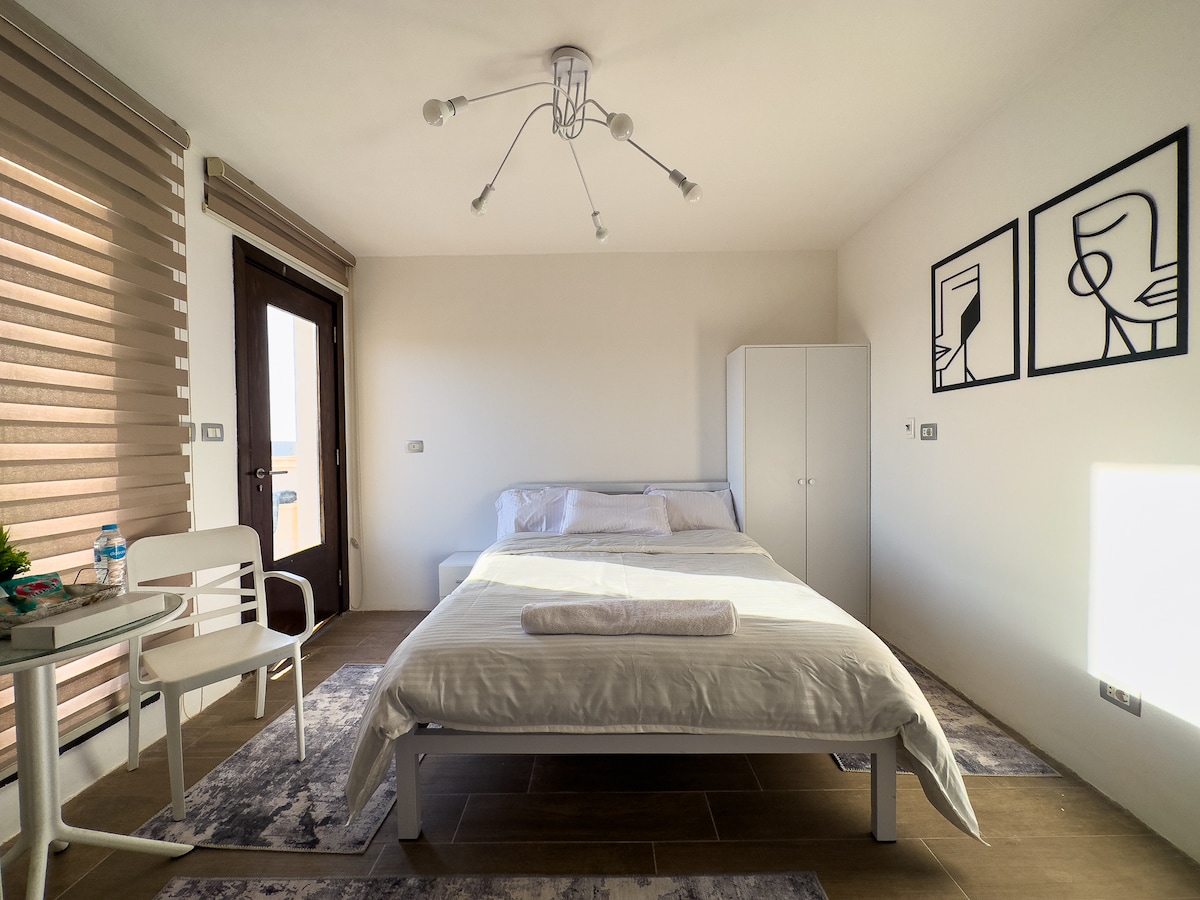 Détendez-vous avec toute la famille dans ce lieu paisible. Profitez de la piscine privée et du jardin spacieux, chaud et ensoleillé toute l'année. Cet endroit chic et confortable dispose d'une chambre principale avec un lit King Size et des draps en coton égyptien, une salle de bains privée, une douche et un jacuzzi. Le séjour dispose de 2 canapés (parfaits pour 2 enfants ; un lit supplémentaire peut être ajouté pour les adultes), d'une kitchenette avec un mini-réfrigérateur et un micro-ondes, et d'une deuxième salle de bain complète.