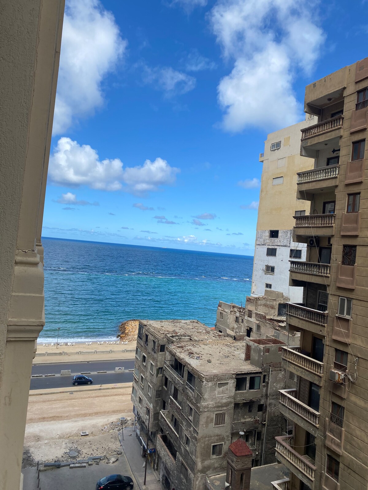 The best panoramic view of the sea from 2/3 of the rooms on the 17th floor (2 elevators) with all equipment for a comfortable stay The best location in Alex: * in front of the famous Beau-Rivage Beach * You can see Miami Island and (45th Bridge ) from the apartment clearly. * Two min. from the main (45th St.) & Fathallah hypermarket * 5 min. from Khalid Bin Al Waleed St. (but the building is in a quiet area) * 10 min. from Montazah Palace