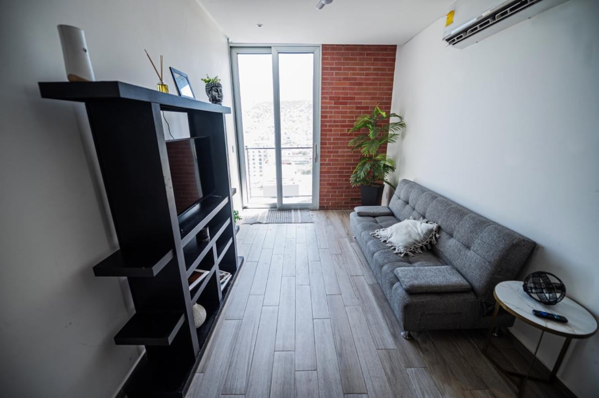 NOUS FACTURONS - Eau 24/7 - 3 personnes Bienvenue à Puntacero ! Nous sommes impatients de vous accueillir dans l'un de nos Airbnb les plus luxueux de Monterrey. Appartement avec une finition exceptionnelle et vue sur le Cerro de la Silla. Emplacement unique ! Wifi, Smart TV, climatisation, 1 place de parking. Idéal pour les cadres, les familles et les touristes. Sécurité 24 h/24 et 7 j/7, 3 ascenseurs, EXCELLENTS ÉQUIPEMENTS. Place commerciale avec restaurants et un OXXO à proximité. Lit King Size et canapé-lit double.