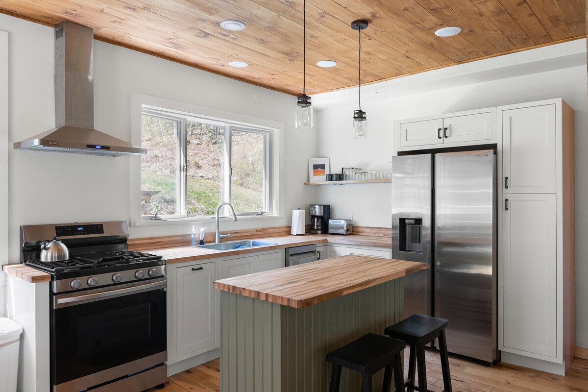 Niché parmi les érables imposants au cœur de la vallée Sterling de Stowe se trouve le Boho Cottage on Maple Run ; un sanctuaire lumineux et chic pour les familles et les amis à la recherche de nature, d'aventure et de connexion. À seulement 10 minutes des boutiques et des restaurants du centre-ville de Stowe, cette retraite isolée mais centrale est située sur certains des meilleurs réseaux de sentiers de Stowe. Entrez « Maple Run » ou « Sterling Valley » dans l'application Alltrails et découvrez rapidement les réseaux de sentiers qui entourent la maison.