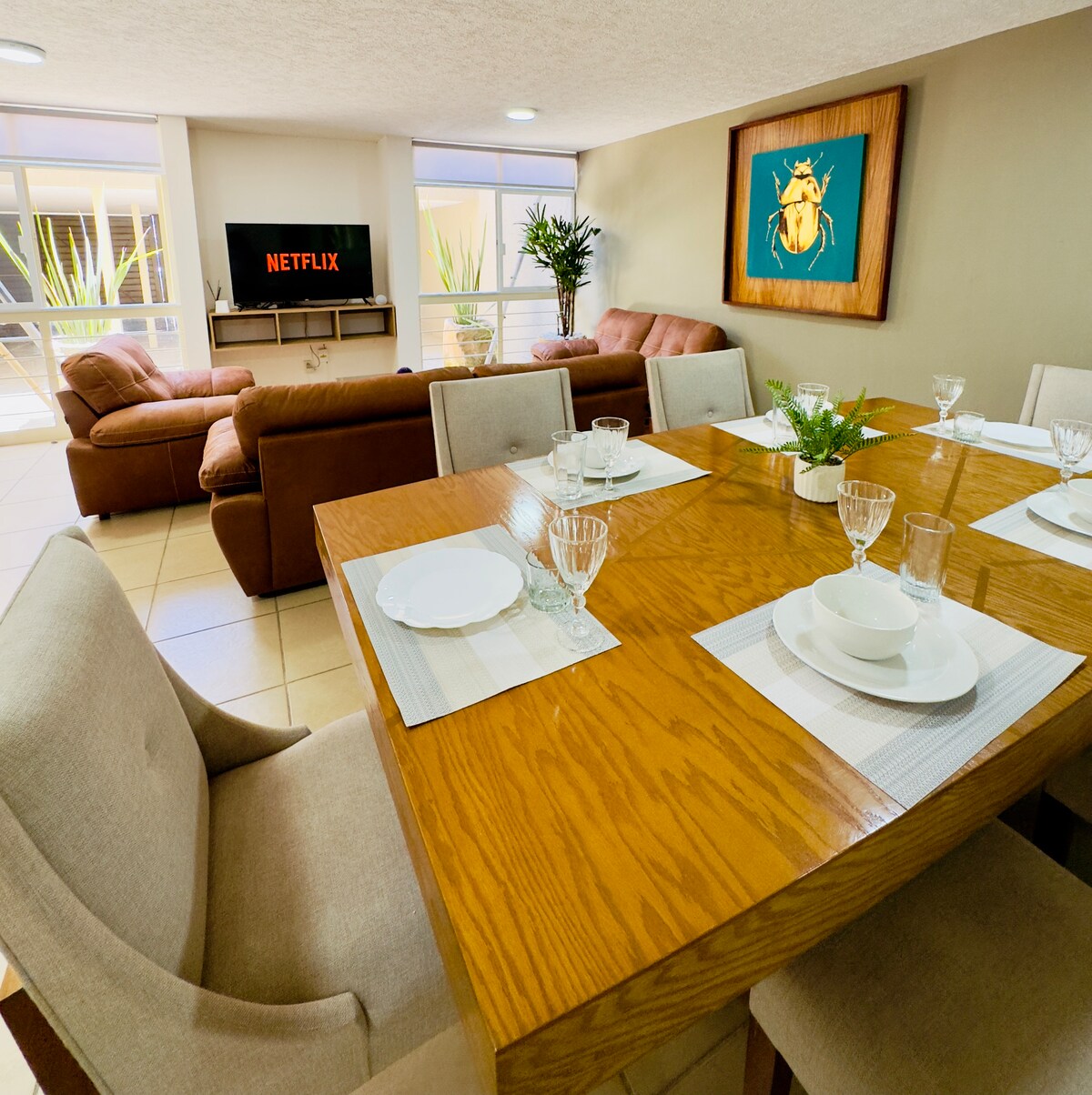 Nous nous efforçons principalement de nettoyer avec professionnalisme, notre objectif n'est pas d'être le moins cher de Morelia mais le plus propre et le plus sûr pour que vous voyagiez en toute tranquillité et nous connaissons vos besoins, c'est pourquoi nous cherchons à dépasser les normes. Vous serez proche de tout si vous séjournez dans ce logement central à quelques pas des Américas et sur l'avenue Acueducto. Avec votre réservation, vous aurez des vélos sous réserve de disponibilité pour découvrir la ville.