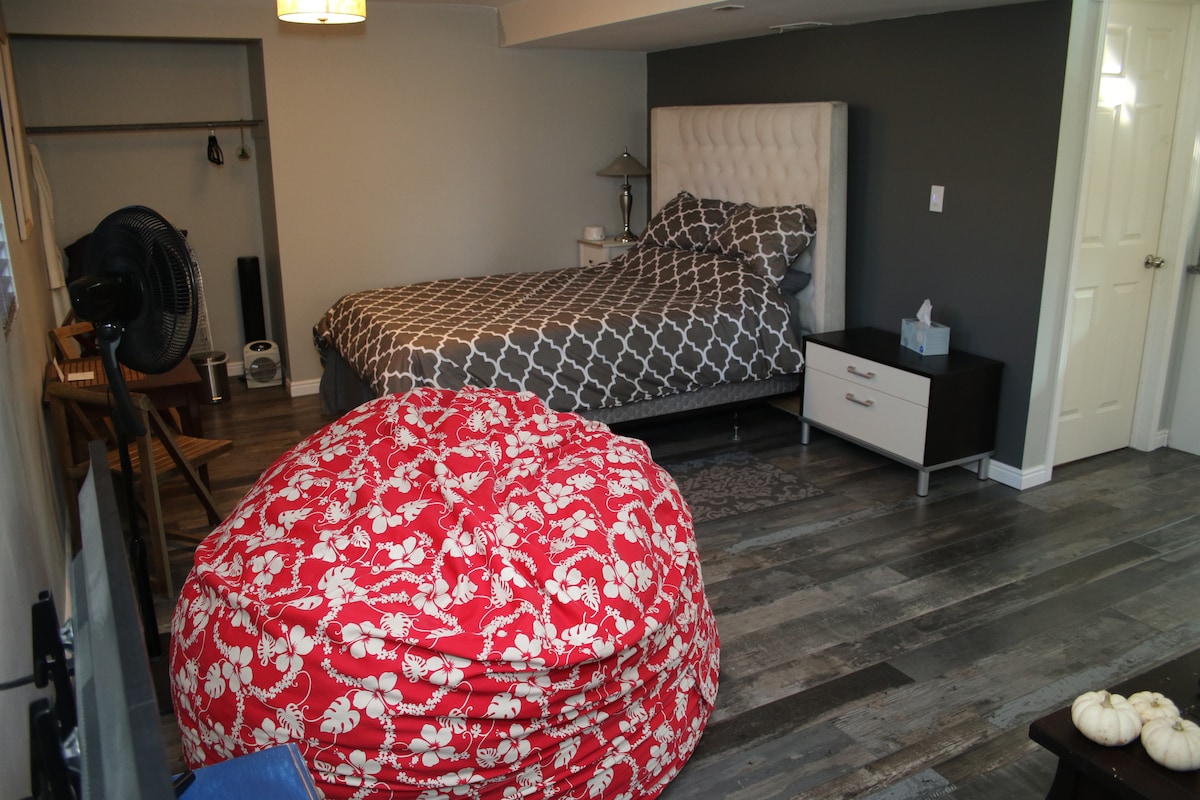 Ce studio spacieux est niché contre la montagne dans un quartier calme et sûr situé au sommet des collines de Bountiful. Des sentiers de randonnée et des pistes cyclables sont situés de l'autre côté de la rue et tout autour. Deux terrains de golf sont situés en bas de la rue dans un sens tandis qu'un centre de loisirs avec une piscine olympique avec des attractions aquatiques pour les enfants est situé dans l'autre sens. Admirez le coucher de soleil sur le Grand Lac Salé depuis votre propre patio couvert avec une vue incroyable. Avec un parking couvert pour les invités, une salle de bain complète avec une douche à l'italienne et une baignoire, et une cuisine entièrement approvisionnée, ce sera votre maison loin de chez vous. À seulement 7 minutes de l'autoroute, 19 de l'aéroport et 19 du centre-ville de Salt Lake City, cet emplacement est idéal. Près de toutes les stations de ski de classe mondiale que l'Utah a à offrir pour s'amuser toute l'année. À seulement six maisons du magnifique temple Bountiful appartenant à l'Église de Jésus-Christ des Saints des Derniers Jours. Cet appartement studio entièrement privé, avec sa propre entrée, est situé dans le sous-sol de notre maison familiale. Il dispose d'une cuisine entièrement équipée, d'une télévision grand écran, d'un lave-linge et d'un sèche-linge.