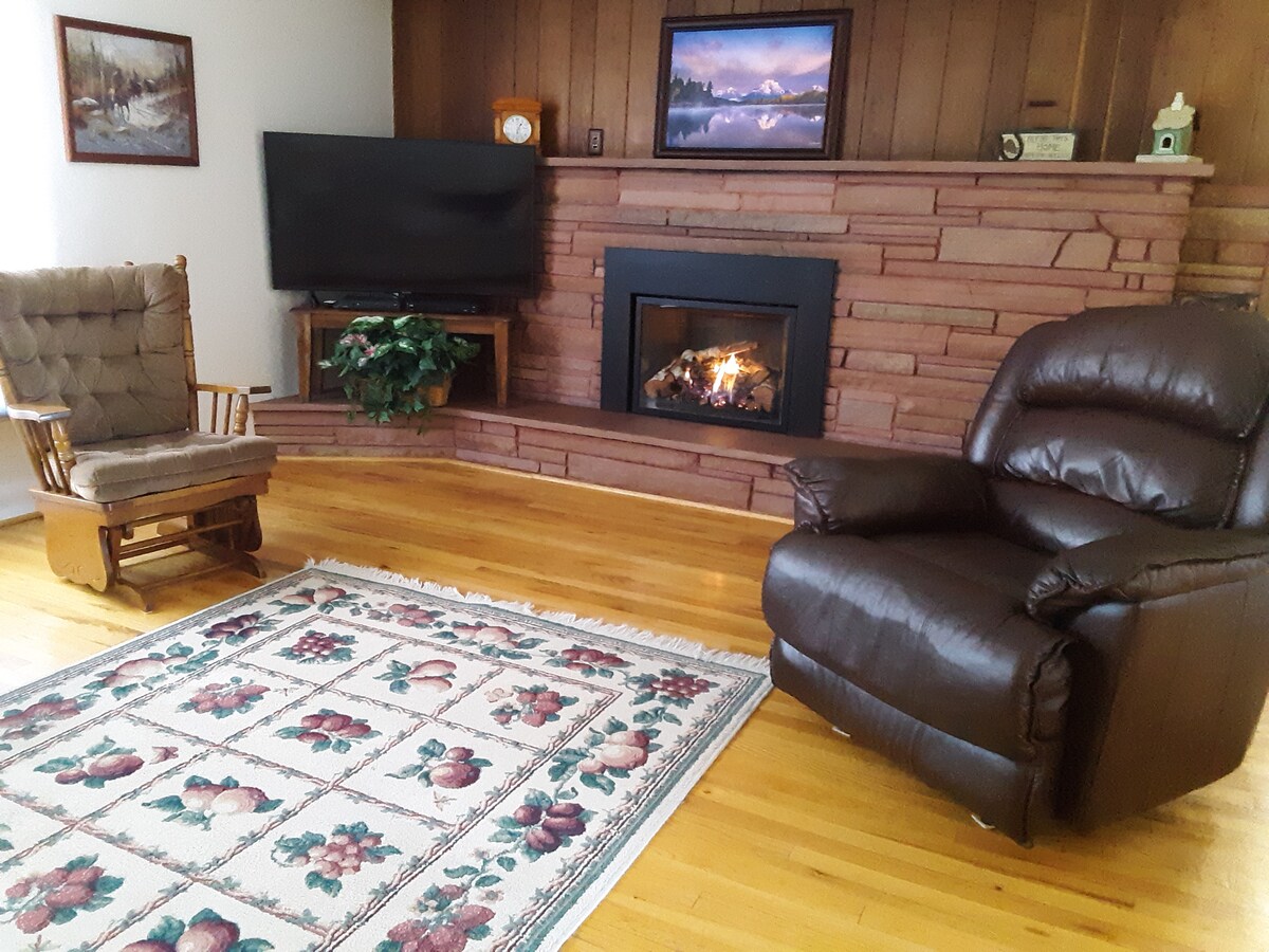 Détendez-vous dans ce logement calme et élégant. Profitez du jacuzzi pour vous détendre ou dégustez des smores près du foyer et de la zone barbecue, blottissez-vous sur le canapé et profitez de Netflix et détendez-vous !