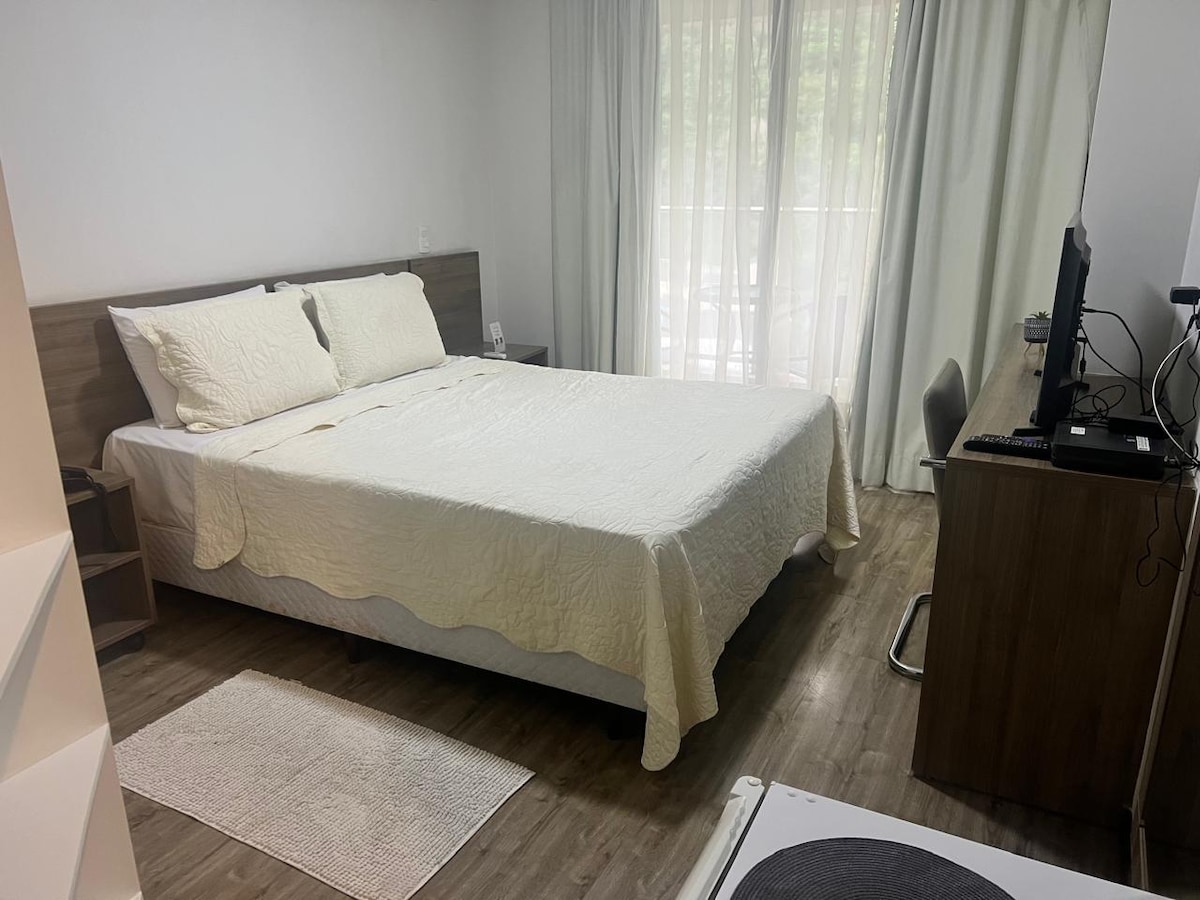 Appartement de style flat super confortable et beau, avec une décoration moderne et propre, parfait pour ceux qui veulent profiter de leur moment de travail ou de loisirs avec confort, sécurité, propreté et bon emplacement. Le soleil est du matin, vue libre sur le vert, étage élevé, environnement réfrigéré. L'appartement de type flat se trouve dans une copropriété fermée avec sécurité, espace de loisirs avec piscine, salle de fitness, sauna et supérette pour des achats rapides. L'espace peut accueillir deux personnes