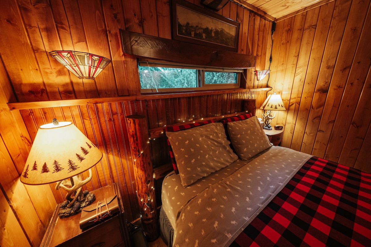 Bienvenue dans votre escapade au mont Rainier SUR Copper Creek ! Nommée d'après notre chiot Ranger, notre petite maison récemment rénovée borde Copper Creek, et se trouve à seulement 4 min (2,4 miles) de l'entrée du parc national du mont Rainier et à 2 min à pied du célèbre restaurant Copper Creek. Camp de base ici avec un lit Queen Size, une kitchenette, un foyer au gaz, une douche à l'italienne et un jacuzzi privé. La micro-cabane parfaite pour vous sentir chez vous après vos aventures dans le parc national.